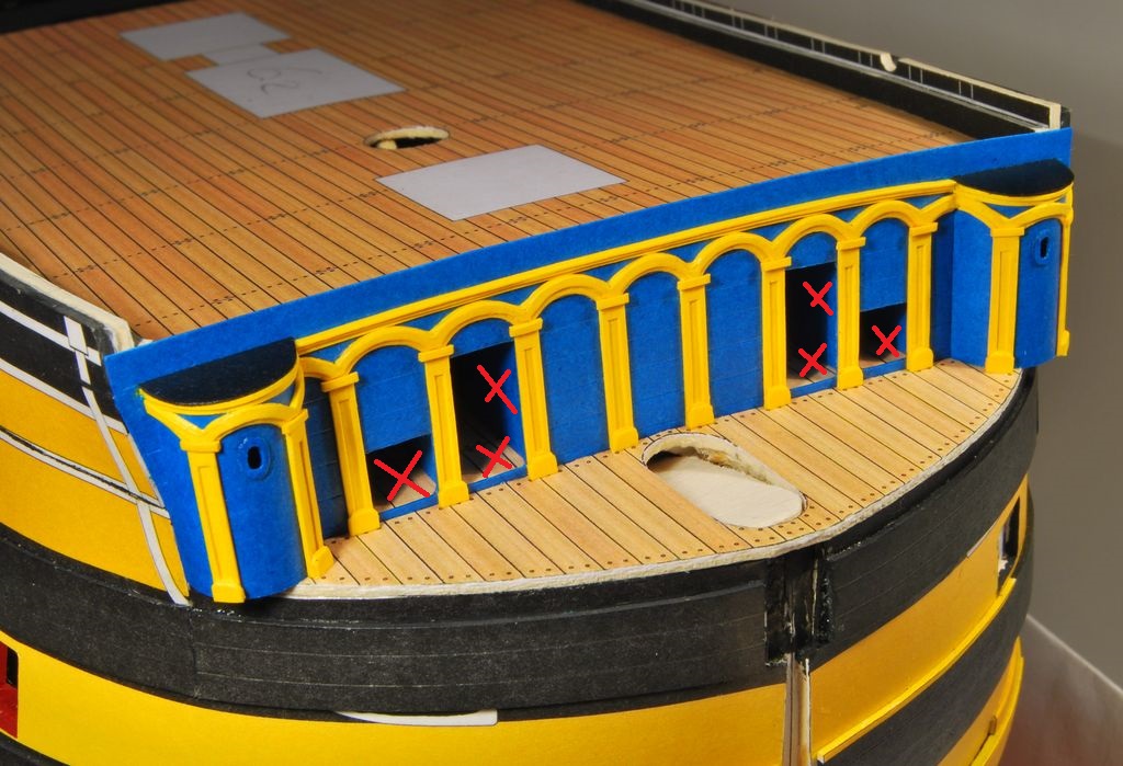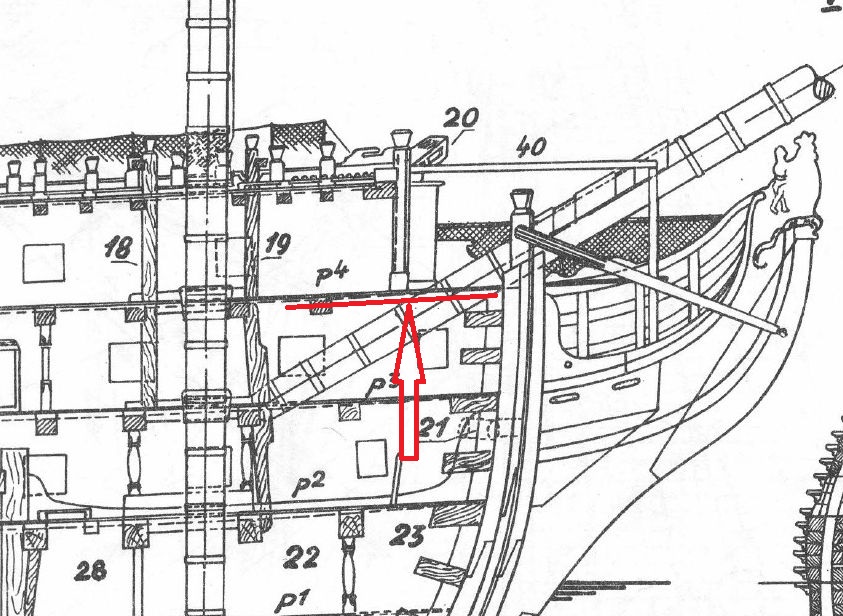 Nie niszcz pochopnie tego pokładu dziobowego. Moim zdaniem masz dobrze, choć mogę się mylić. Ogólnie to ciekawy problem. Widziałem wiele rysunków oryginalnych z epoki różnych okrętów I rangi. Tu jest kopalni tych rysunków