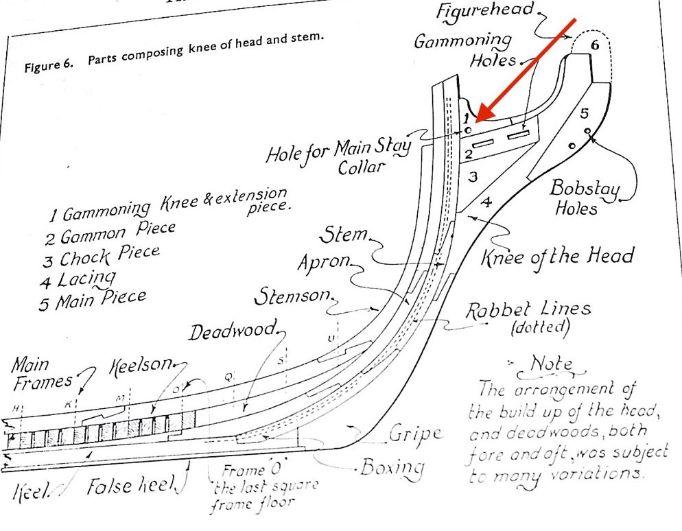 Rysunki i plany wskazują na przelot (otwór) w stewie dziobowej ma być znacznie niżej (tak też sobie wywierciłem):
