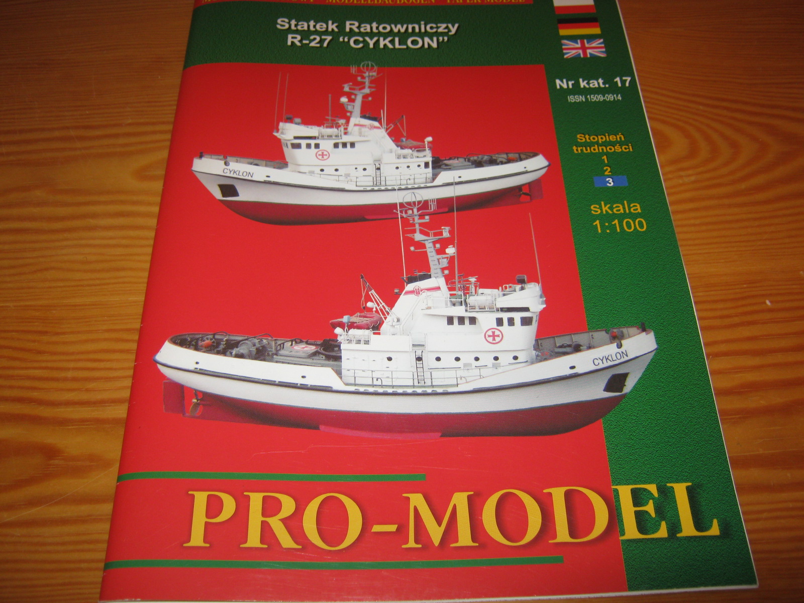 Chciałbym przedstawić relację z budowy modelu statku ratowniczego R-27 CYKLON z wycinanki PRO-MODEL.