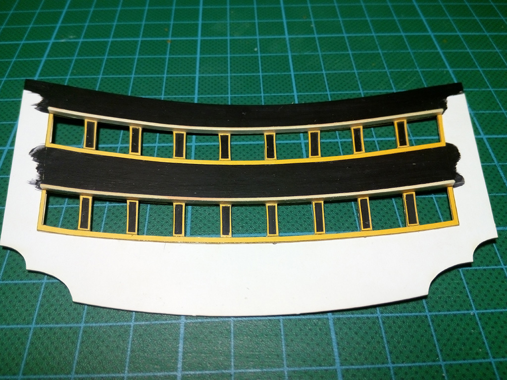 Wkleiłem burty, koło sterowe i naktuz