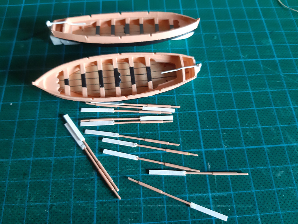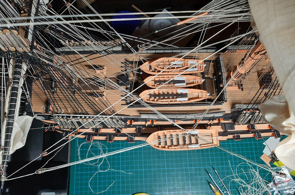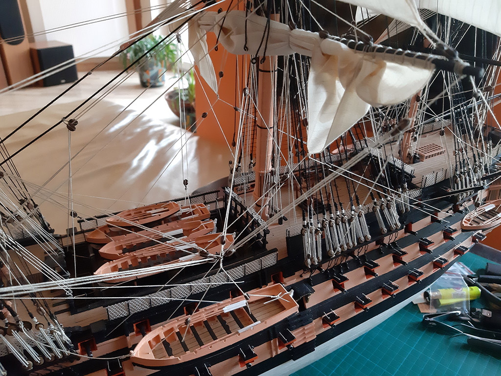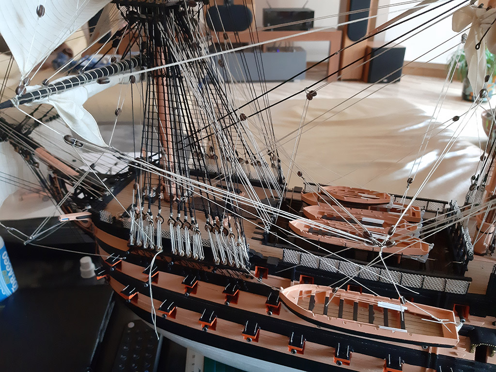 Zrobię na pewno windy na rejach (Tackle pendant) i będzie na windach podniesiona największa szalupa Wiktorka