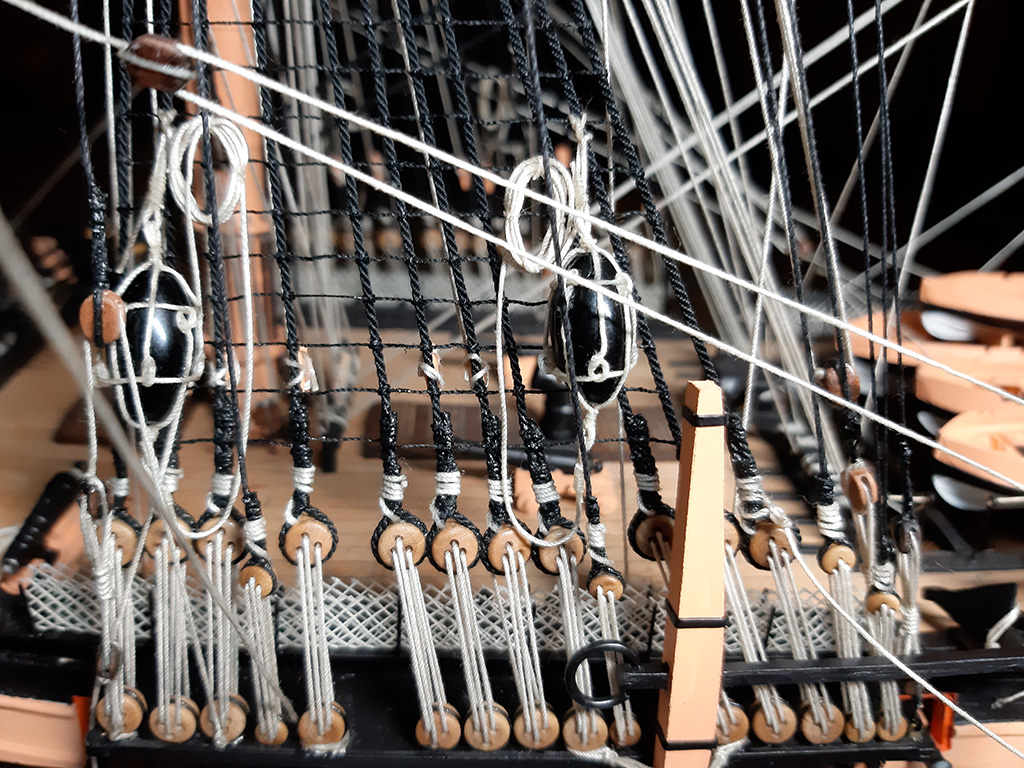 Znalazłem kiedyś artykuł Romana Roganova, w którym pokazuje jak zagospodarować te liny na HMS Bounty.