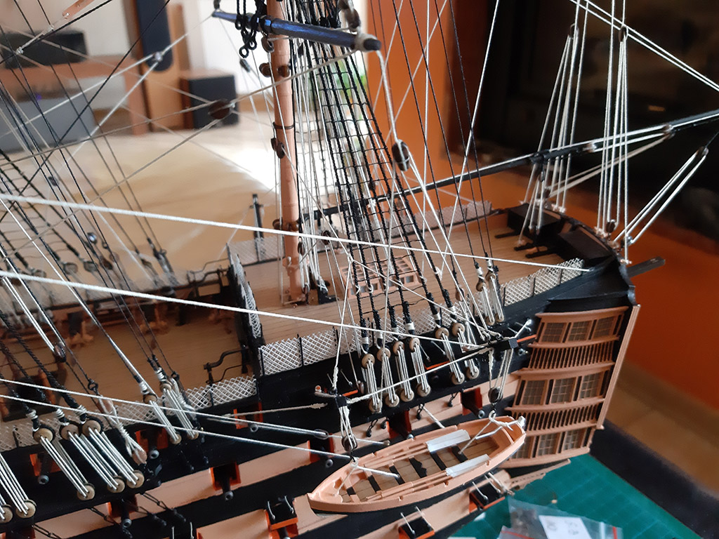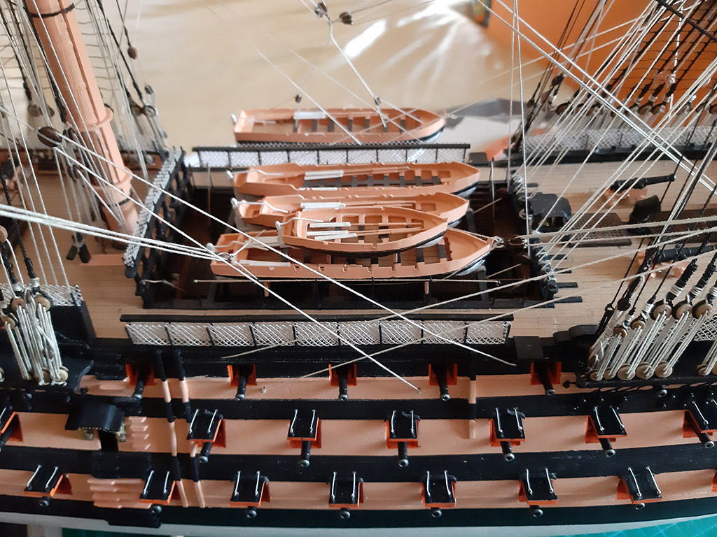 Zrobię na pewno windy na rejach (Tackle pendant) i będzie na windach podniesiona największa szalupa Wiktorka