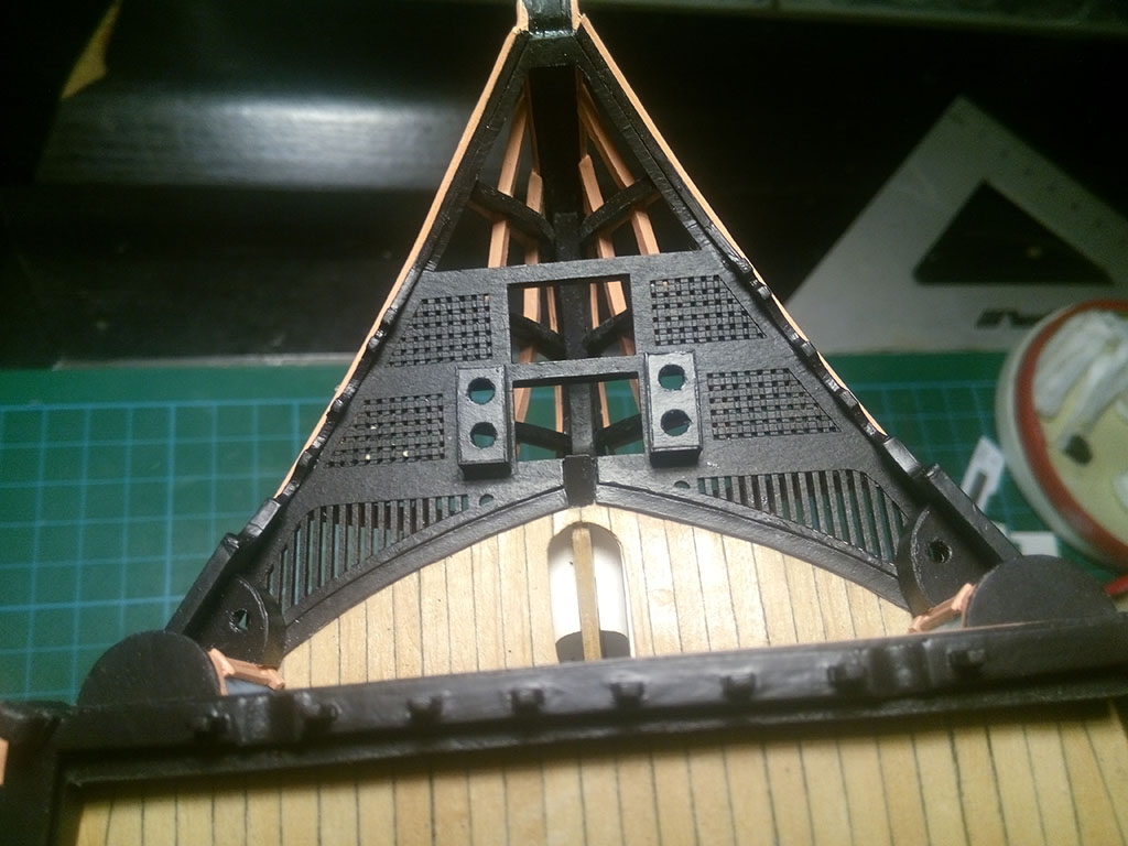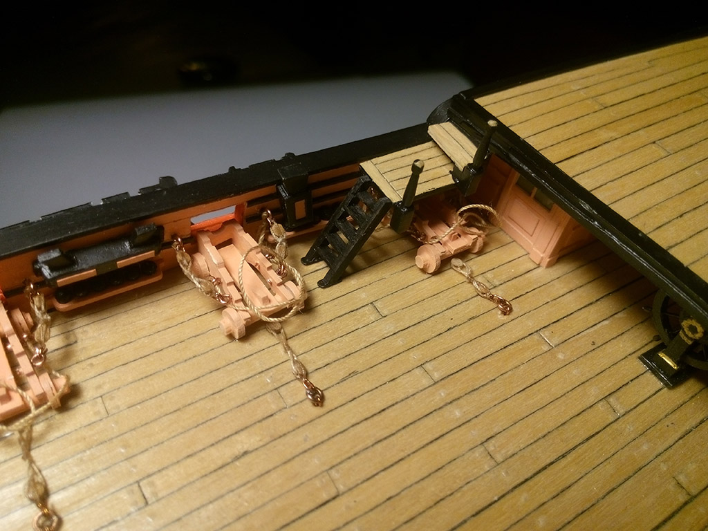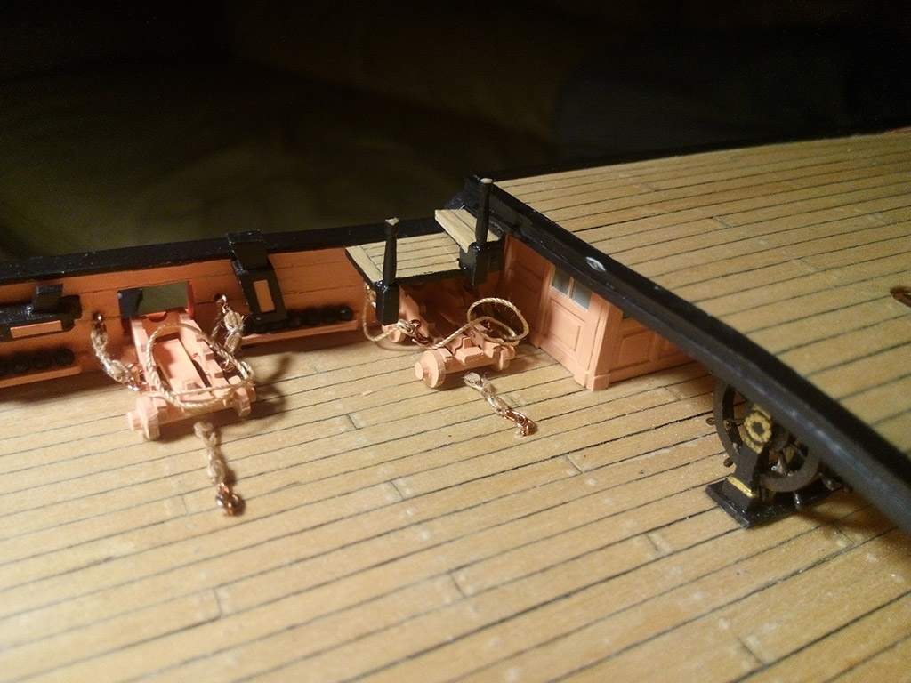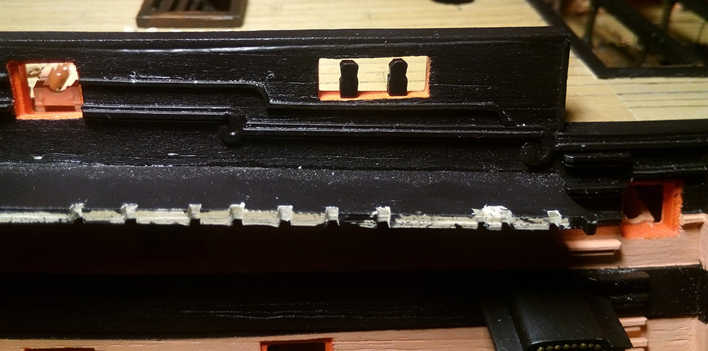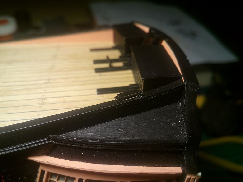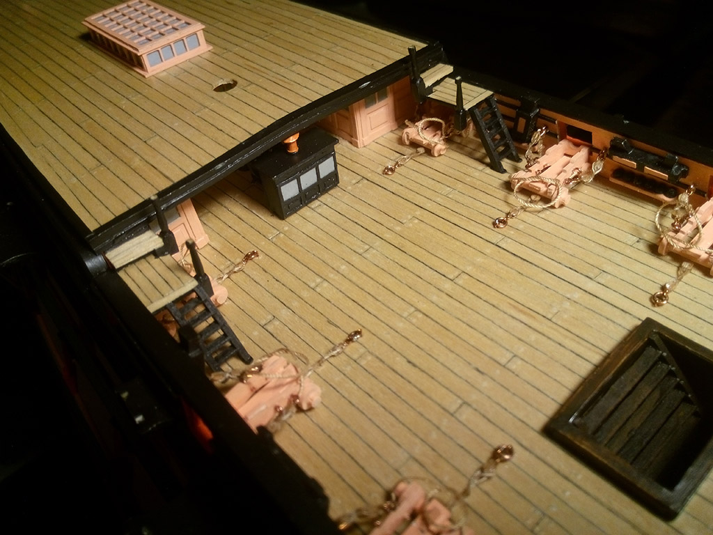 Teraz musiałem zrobić 6 lawet na górnym pokładzie, bo po zamontowaniu schodów na pokład rufowy byłoby to trudne,