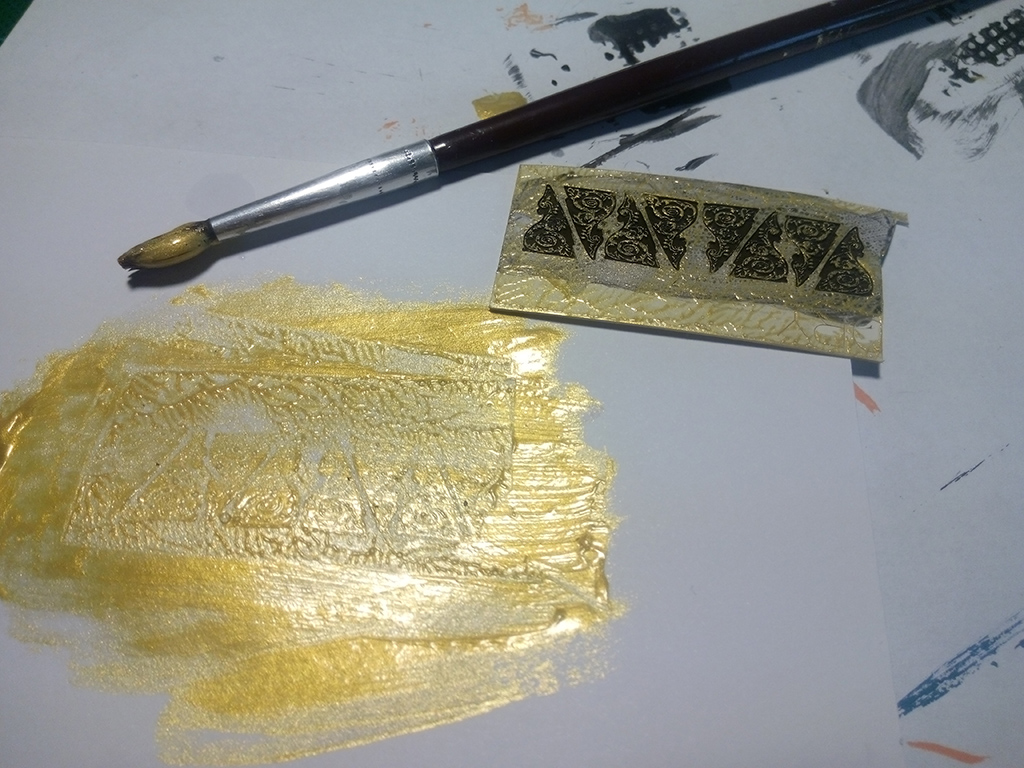 i pomalowany na złoto metodą stempla