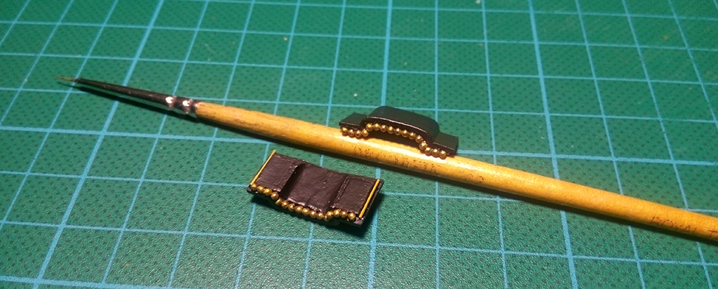 Teraz ozdabianie daszka - małe kulki stalowe i drucik pomalowane na złoto