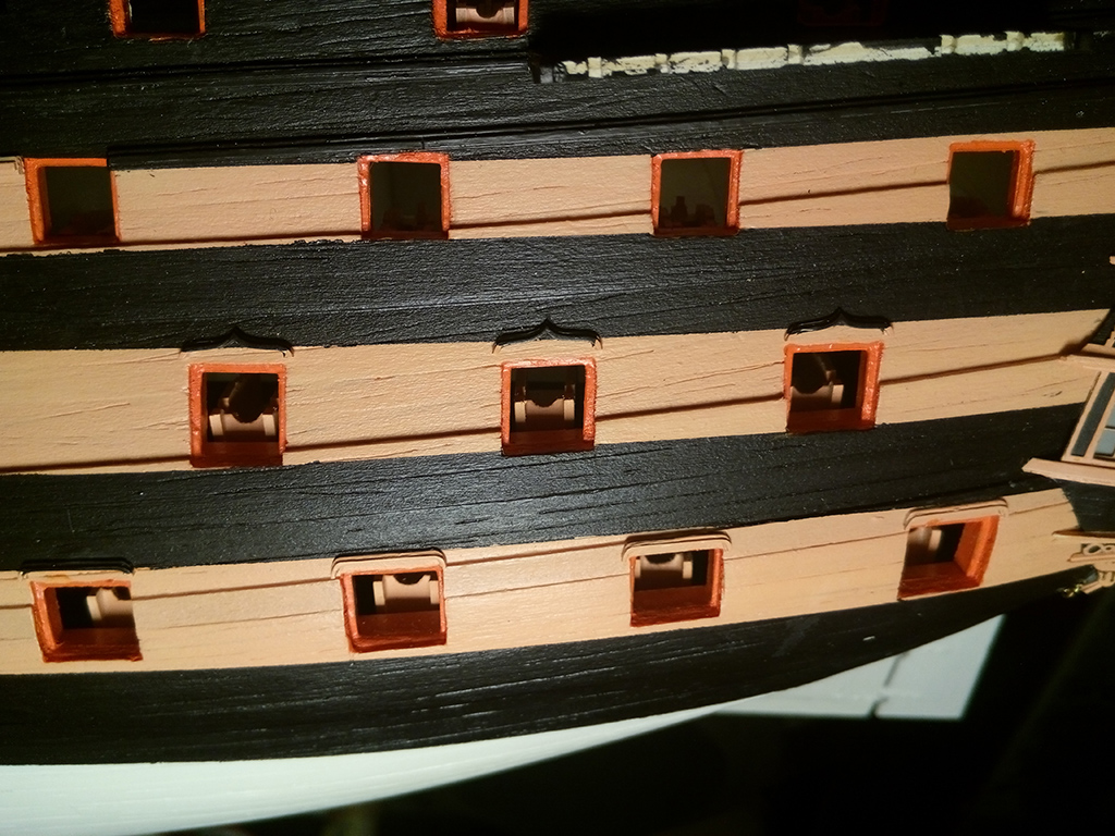 okapy szpiczaste są tylko nad siedmioma furtami środkowego pokładu działowego