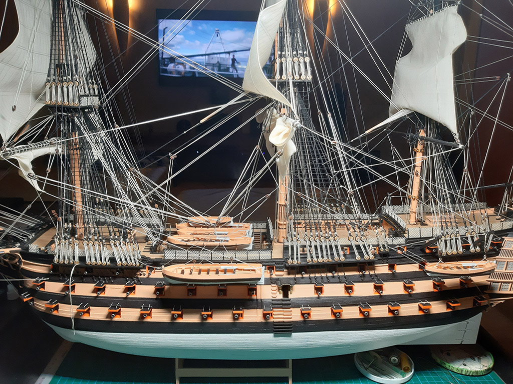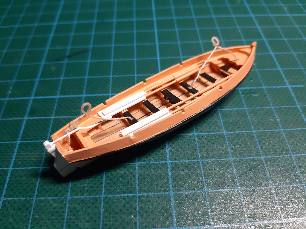 Zrobię na pewno windy na rejach (Tackle pendant) i będzie na windach podniesiona największa szalupa Wiktorka