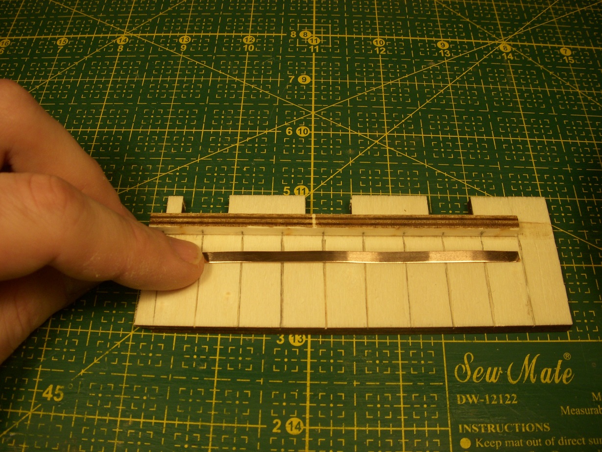 Tym sposobem nie zrobisz juz wiecej tego bledu, bo po polozeniu odbojnikow bedziesz nastepnie wklejal miedzy nimi zwykle planki poszycia. Calosc bedzie miala ten sam przebieg.