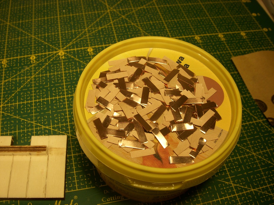 Tymczasem zmierzamy dalej. Zdecydowałem, że zanim przejdę do jakichkolwiek szczegółów i wykończeń chcę wpierw zamknąć temat miedziowania. Będę mógł wtedy już kadłub zabezpieczyć i trwale osadzić w stoczni. Zminimalizuje to potrzebę wirowania modelem w osi, co zawsze grozi mniejszymi lub większymi stratami na poziomie wykonanych już prac.