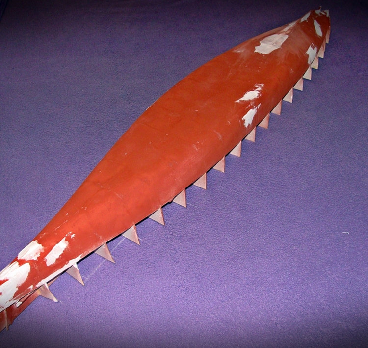 Tak wyglądają wręgi po wycięciu otworów przez które przejdzie listwa, otwory są wycięte tak by listwa przeszła w miarę ciasno ale nie też nie za ciasno czyli tak w sam raz