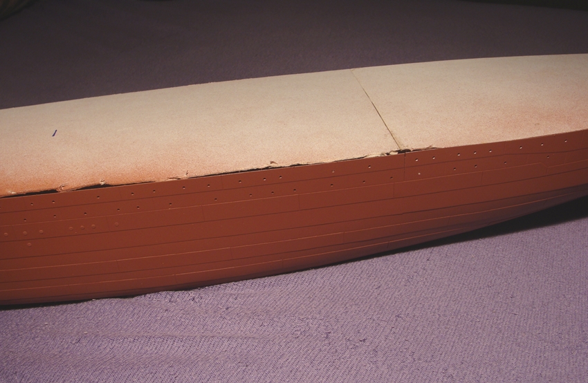 Witam, niestety nad Rodneyem zaczęły zbierać się czarne chmury a bardziej nad jego dokończeniem mianowicie już jakiś czas temu zauważyłem małe pęknięcie na kadłubie jednak troszkę to zbagatelizowałem tzn. zalałem cyjanokrylem, wyszlifowałem i poszłem z budową dalej jednak zaczęły się pojawiać niestety kolejne pęknięcia na całej długości kadłuba nie znam powodu tych pęknięć ale jeden z nich na pewno może być taki że coś nie tak pod szpachlą dzieje się z pianką, choć nie miałem nigdy przy innych modelach z tym problemu Bismarck, Akagi, Nagato, stoją do dziś i nic się z nimi nie robi a Bismarck już stoi kilka dobrych lat, Akagi ponad dwa lata.