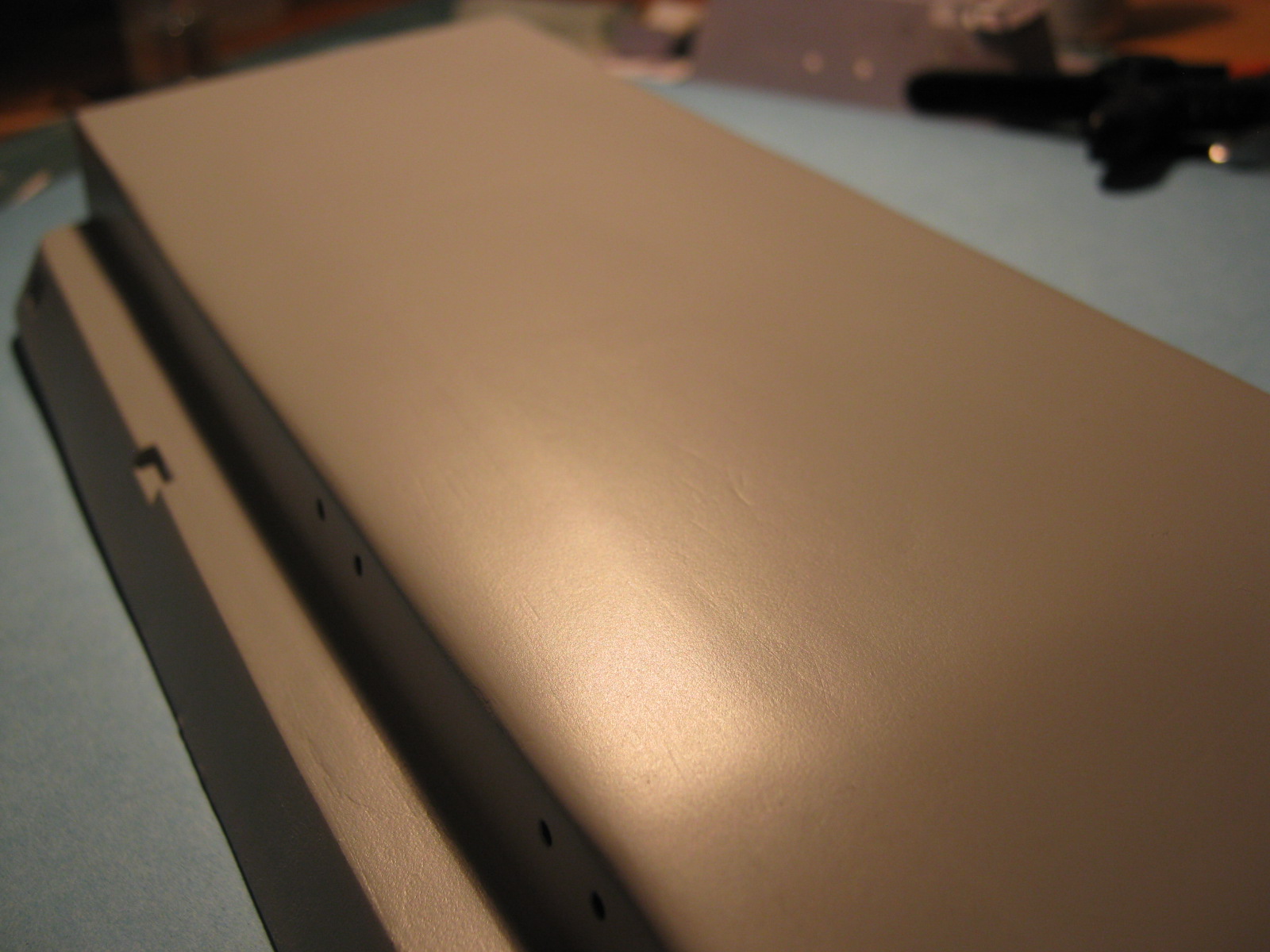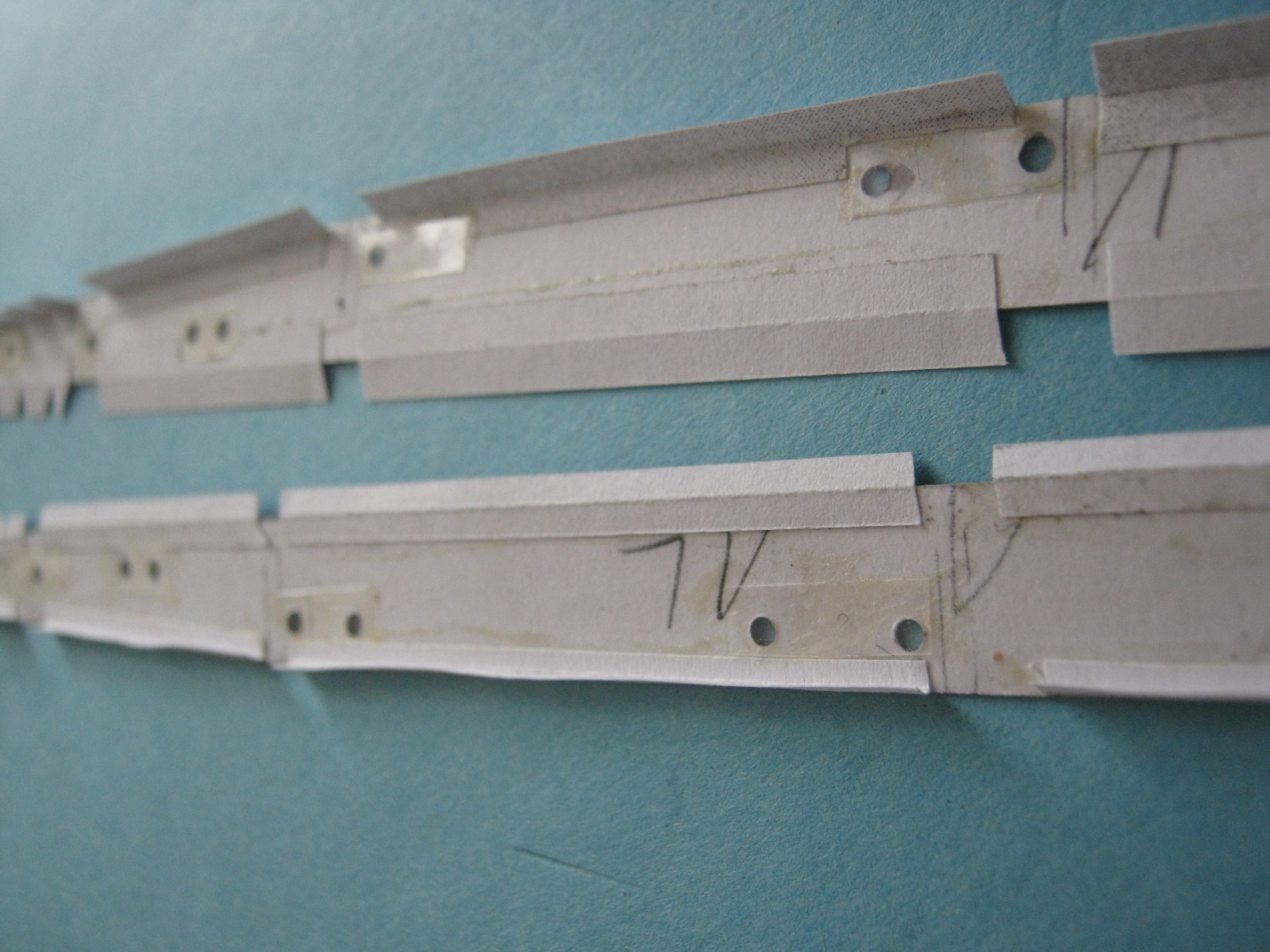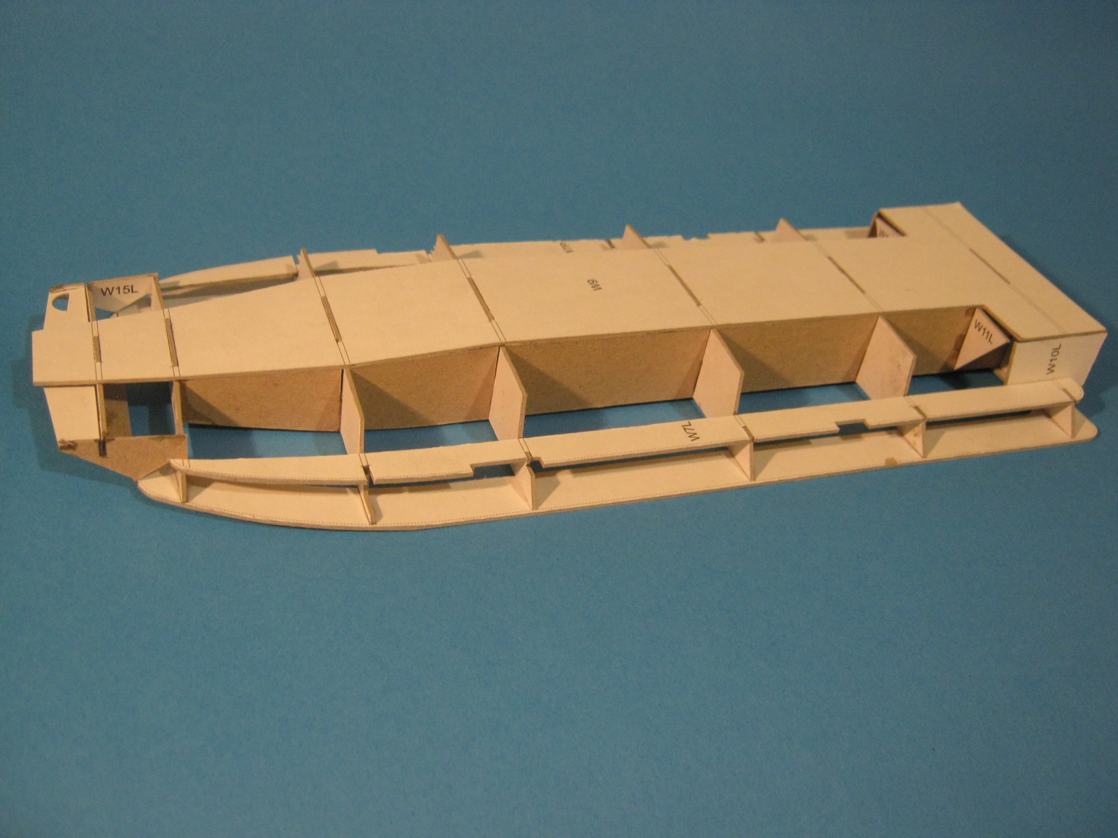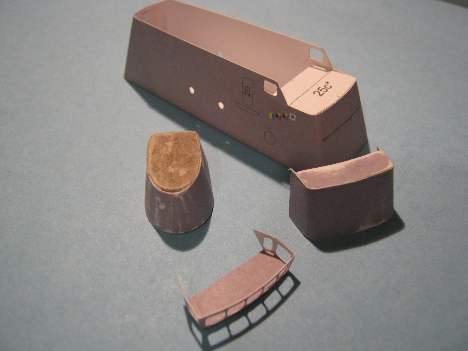 Kolejnym problemem są "wiszące w powietrzu" oklejki. Nie wiem czemu tak to zaprojektowano że od razu trzeba doklejać sklejki pomocnicze. Jak dla mnie mogły być od razu wydrukowane i być całością z oklejką ściany. A najlepszym wyjściem moim zdaniem byłoby takie zaprojektowanie szkieletu żeby miał formę "skrzyniową" i oklejki zewnętrzne naklejałoby się na płaskie powierzchnie kartonu.