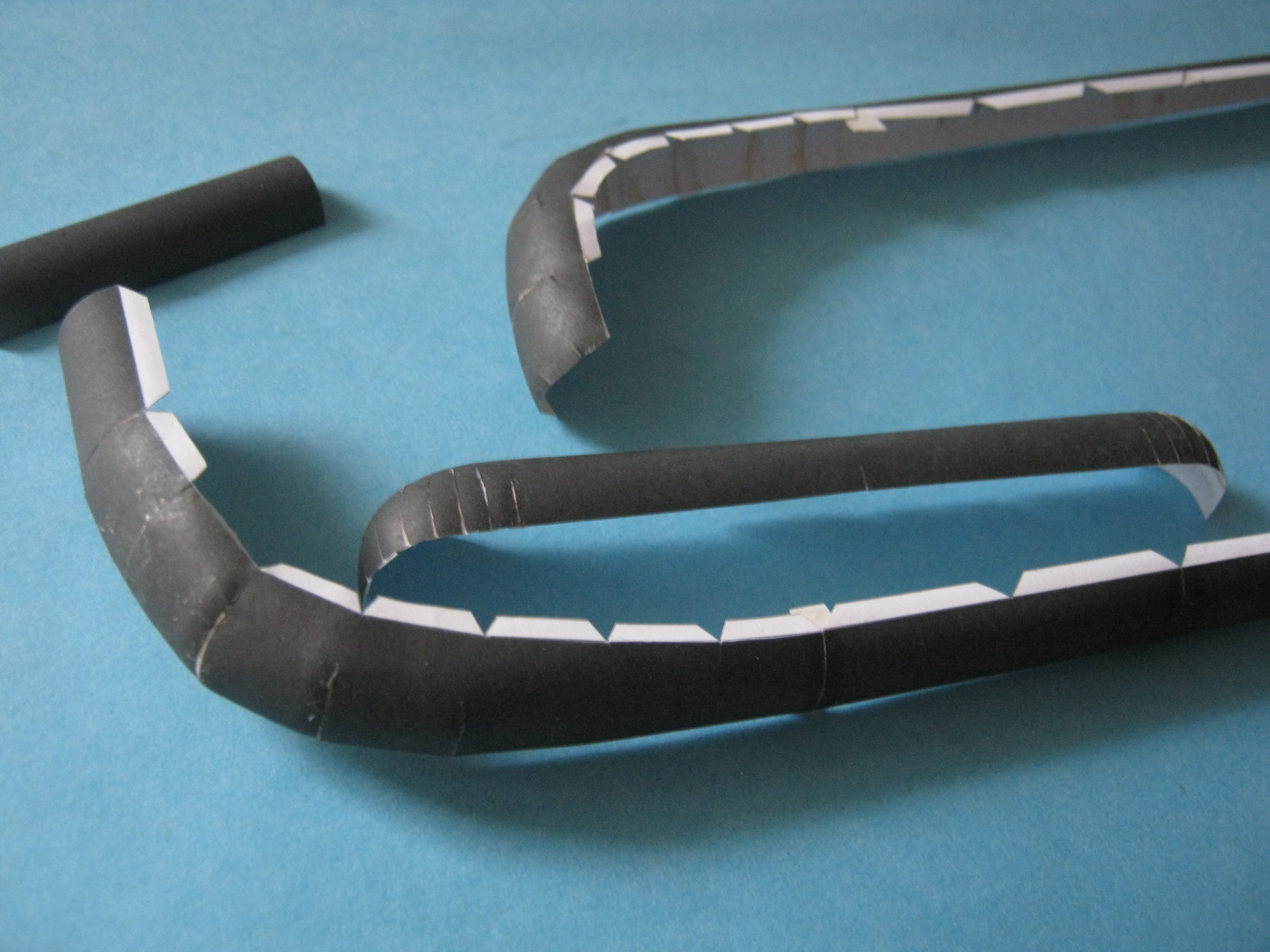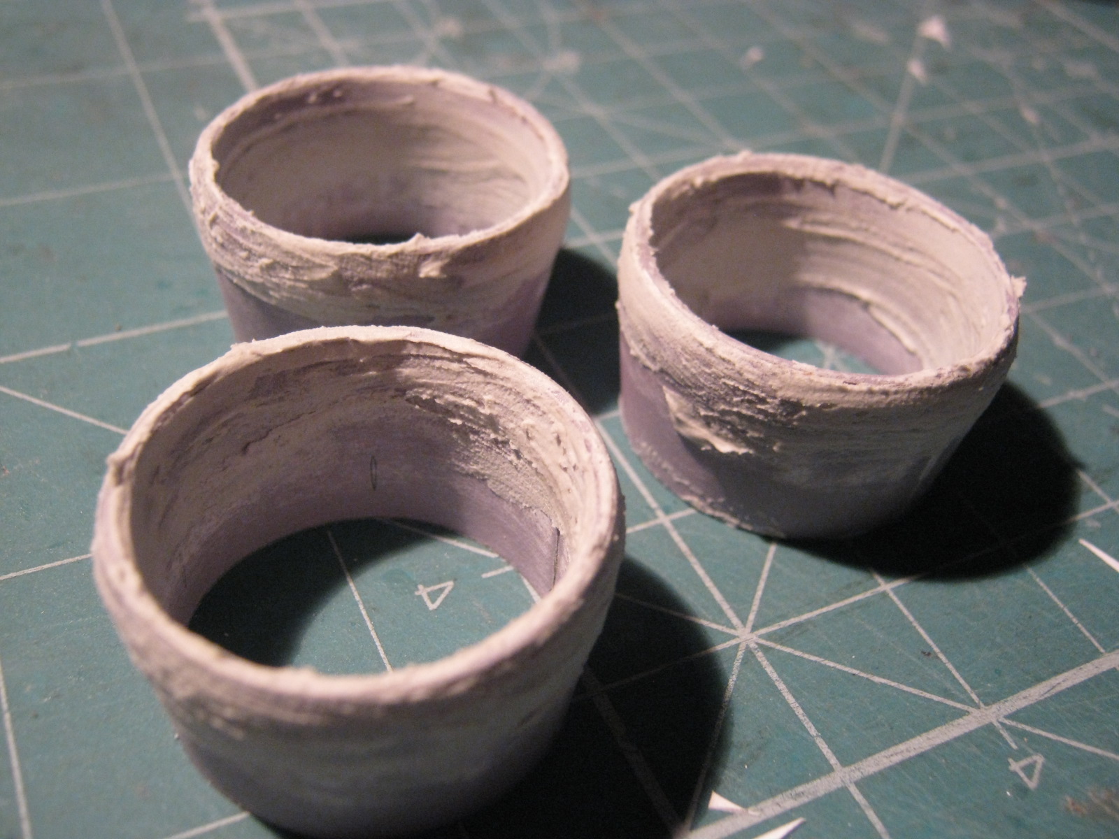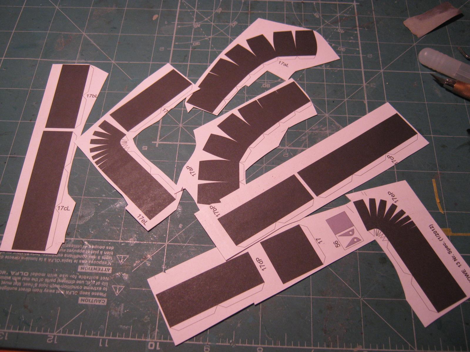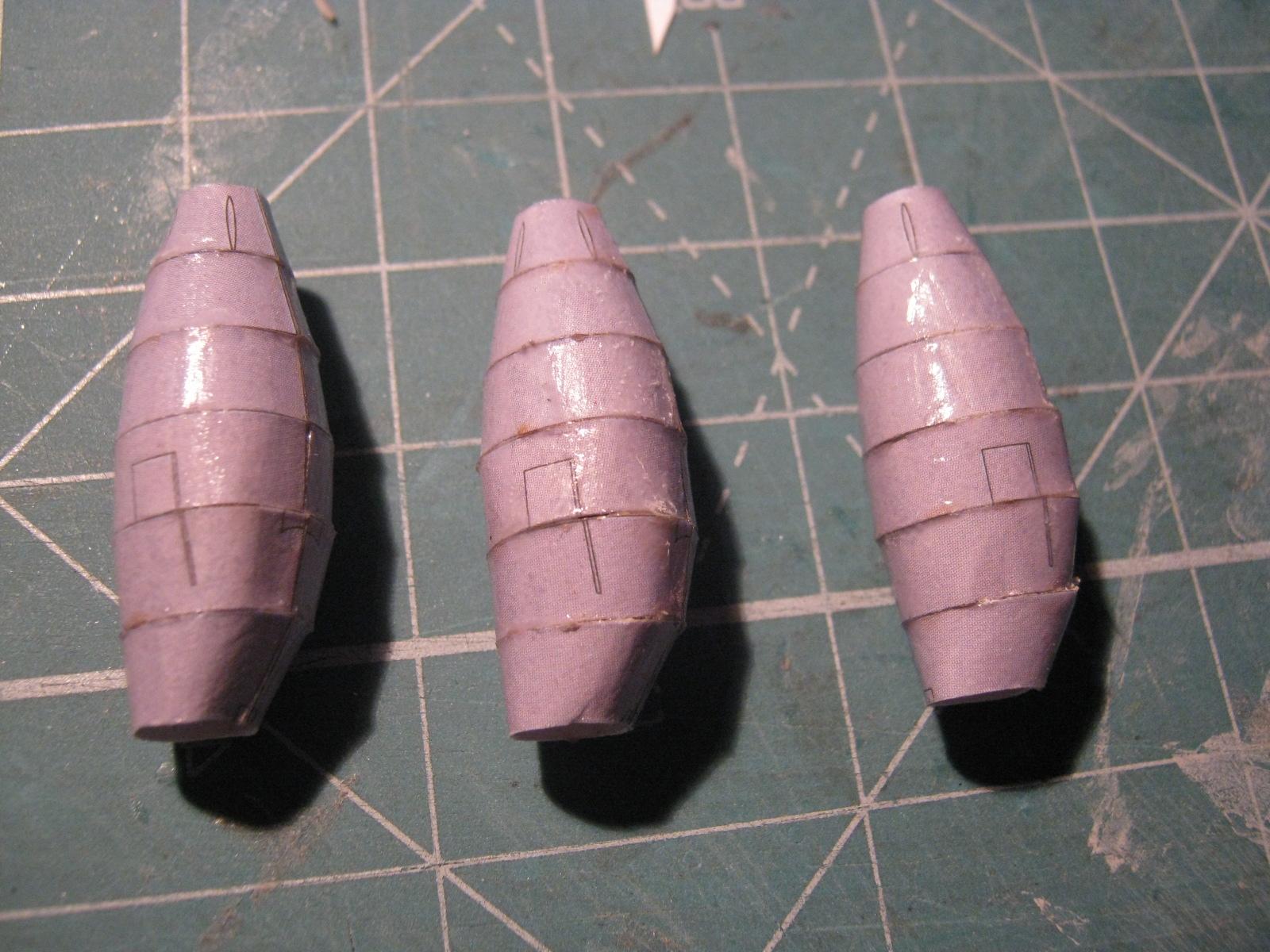 Przy robieniu samych poduszek zbytnio się nie starałem bo i tak wiedziałem że będę szpachlował (chociaż podziwiam autora modelu że tak ładnie mu te poduszki wyszły bez szpachli). Później stwierdziłem, że aż przesadziłem z niestaraniem się i trochę kasztany wyszły. Nie mogłem uformować kartonu na krzywiznach. Dopiero później doszedłem do wniosku że mogłem wszystkie zgięcia porozcinać, uformować, posklejać w całość i poszpachlować. Myślę, że tak byłoby łatwiej. Ale wydaje mi się, że jakoś wybrnąłem przez nałożenie dużej ilości cyjanoakrylu, posiłkowanie się dużą ilością papieru ściernego i nakładaniem szpachlówki kilogramami