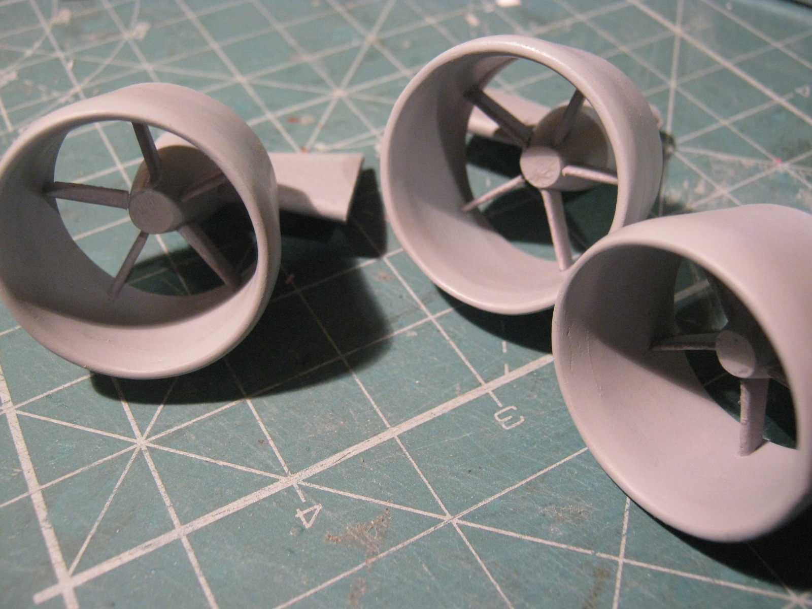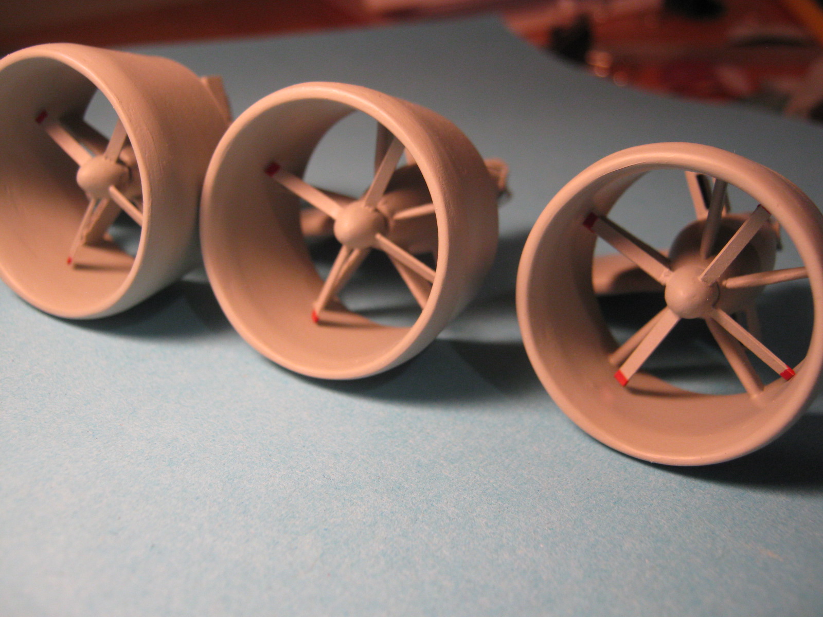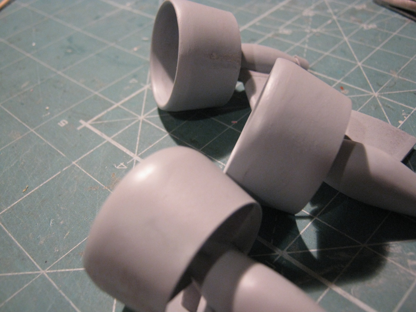 Gondole z silnikami jeszcze nie skończone ale pokazuję w jaki sposób je robiłem. Na razie wszystko psiknięte tylko podkładem.