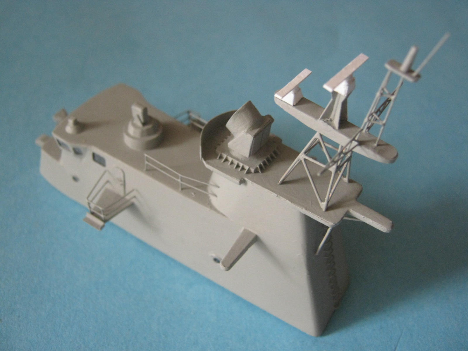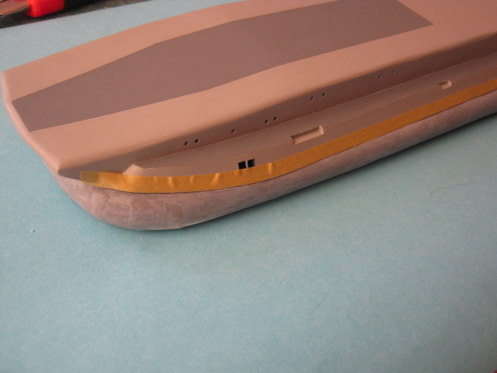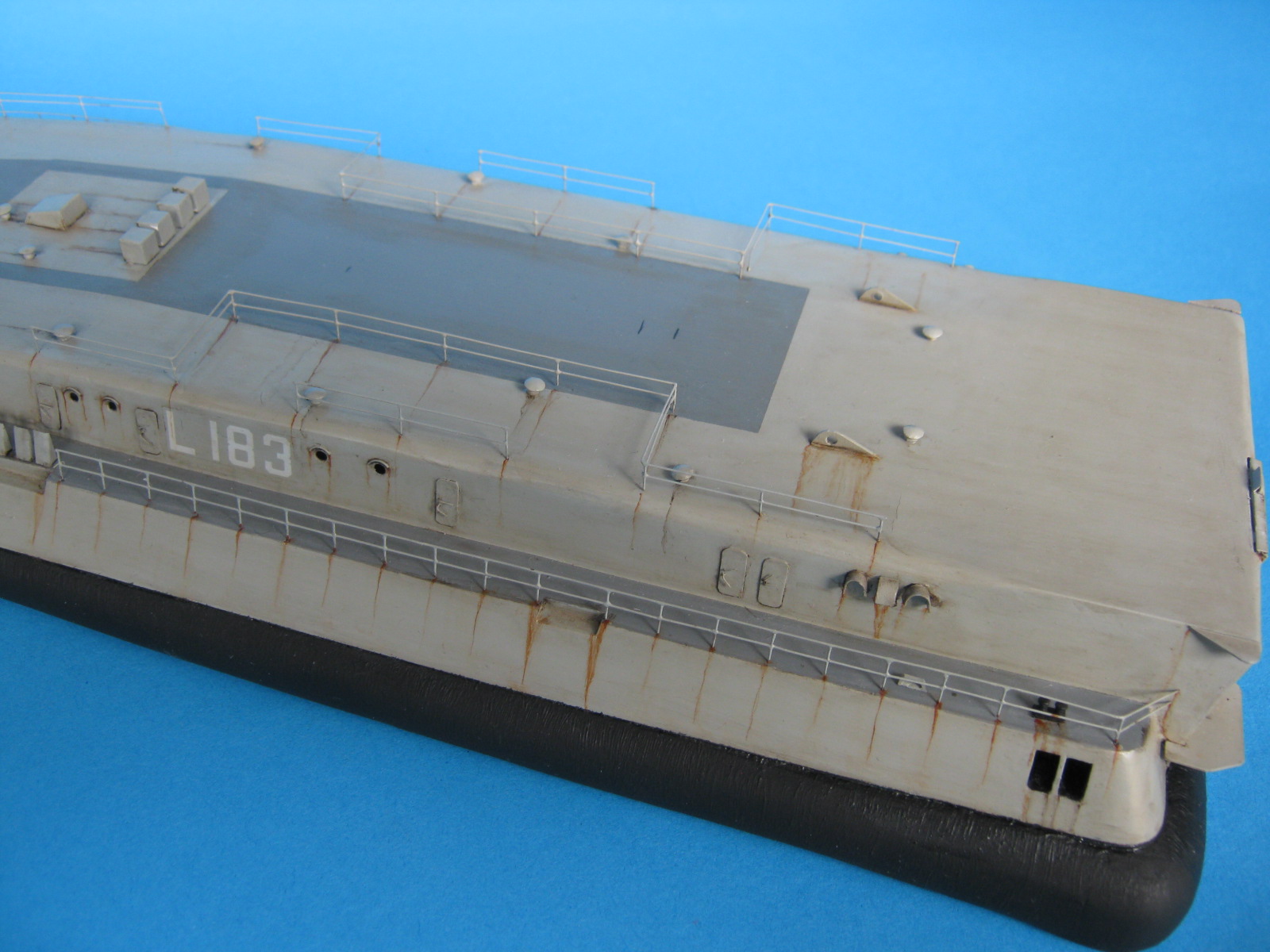 Zabrałem się również za "lekkie" brudzenie. Zamysłem moim jest aby porobić rdzawo-brudne zacieki. Robię to pierwszy raz i chyba troszkę przeszarżowałem z nadbudówką (chociaż jak był u mnie kolega co pływa na trałowcu to twierdzi, że po dłuższych rejsach ruda wychodzi z każdego możliwego elementu i ta moja nadbudówka wg niego wygląda stosunkowo realistycznie). Jak dla mnie to te zacieki są zbyt "ordynarne" ale takie już zostaną bo całość jest już polakierowana. Wydaje mi się, że zacieknięte silniki wyszły lepiej. Ładniej to wygląda gołym okiem niż na zdjęciach. Zresztą jak się ogarnę to w Tczewie tego kasztana będzie można zwodować do Wisły jak się Wam nie spodoba. Ogólnie to chciałem się tylko pobawić w brudzenie a z modelem raczej mistrzostwa polski nie zdobędę. Nie przypuszczałem również, że w moim modelarskim wyposażeniu znajdą się farby olejne dla plastyków, jakieś śmierdzące rozpuszczalniki white spiryt i płyn do podłóg Sidolux - Quo Vadis Lipa...