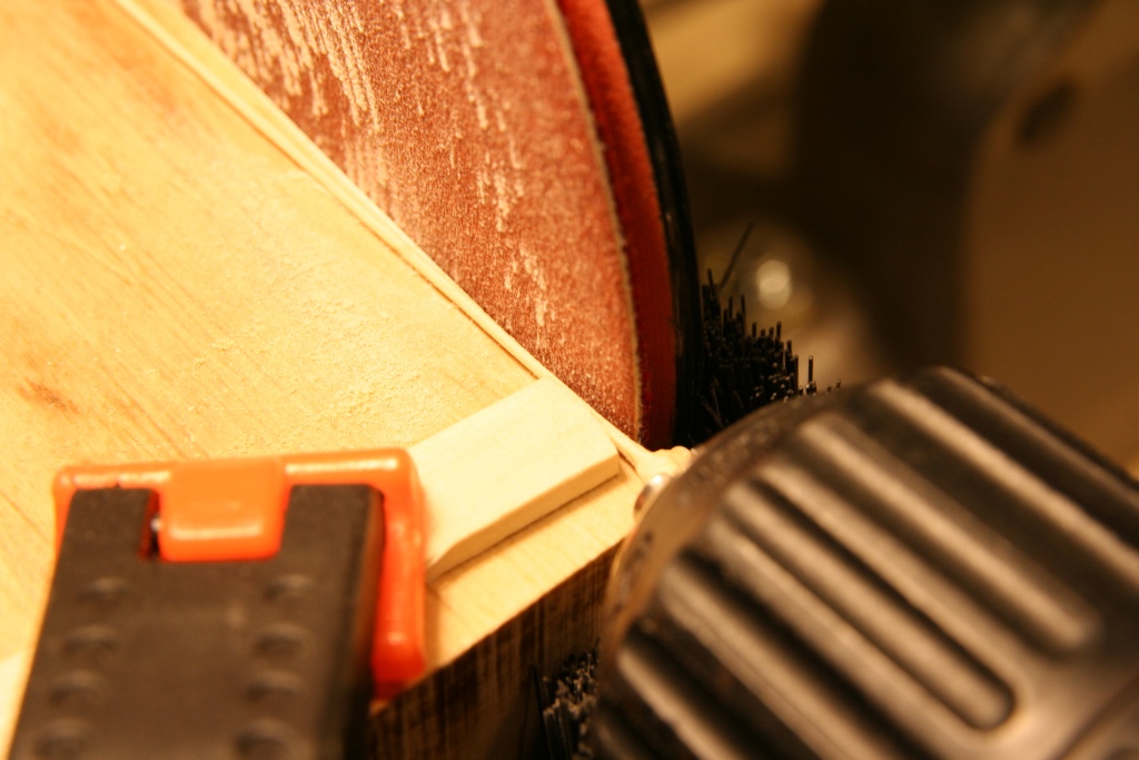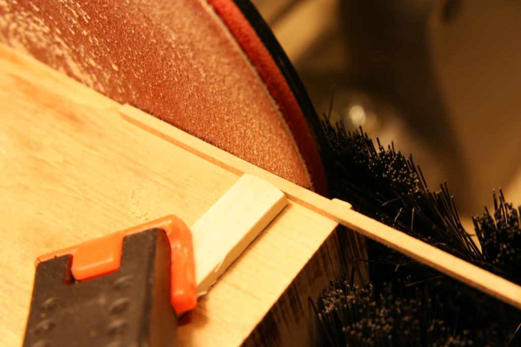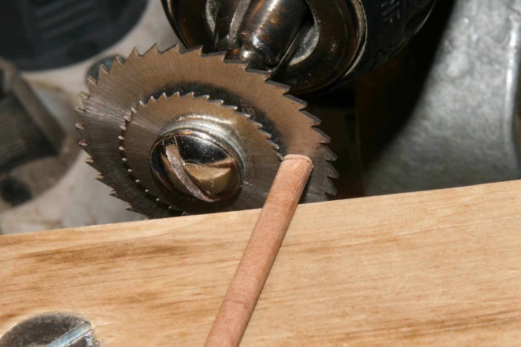 Ostatnie kilka dni to zabawa z bloczkami, jufersami i kręceniem linek. Pojedyńcze bloczki z listewki jabłoni najpierw nawiercane, później szlifowanie (wykonanie pokazane w Ninie). Niestety ta sama technologia okazała się nieprzydatna do bloczków podwójnych i potrójnych, ze względu na problem z utrzymaniem dokładności wiercenia. Zrobiłem je z forniru gruszy i przyznam, że całkiem nieźle wyszły i całkiem szybko się je robiło. Dodatkowo patent na nacinanie rowków. Myślę, że zdjęcia wystarczająco obrazują kolejność prac.