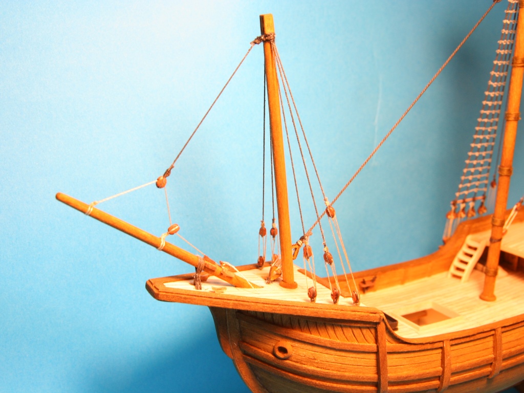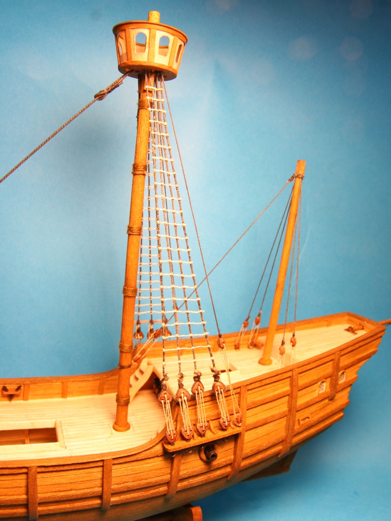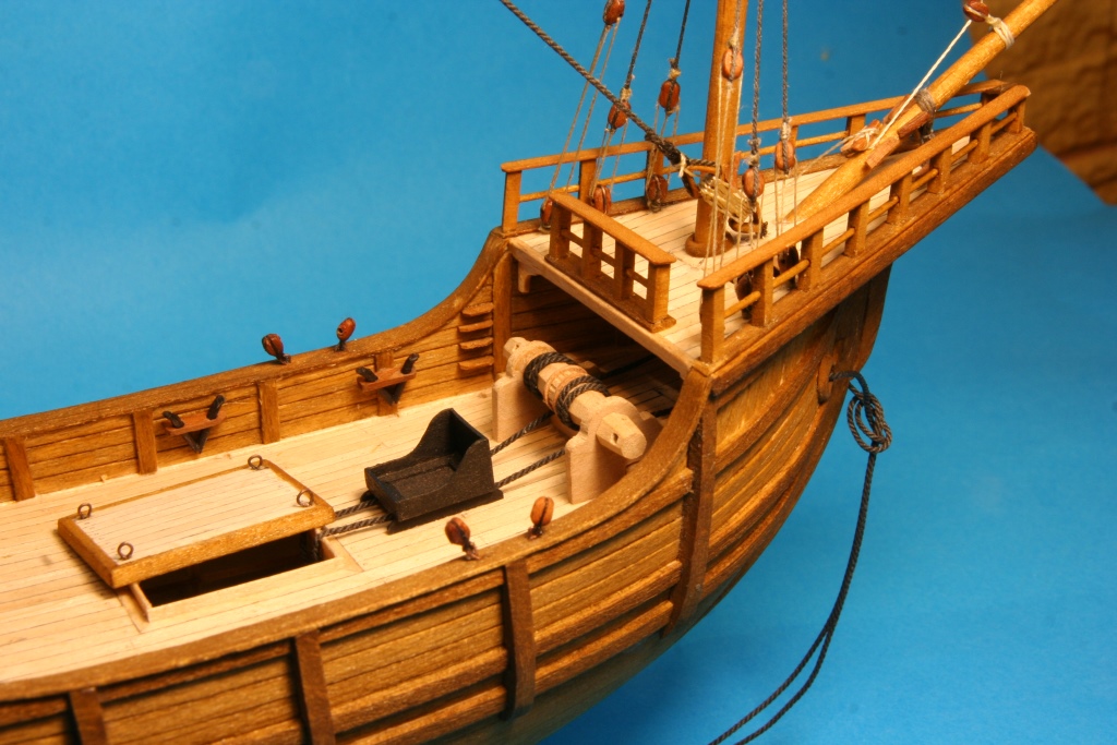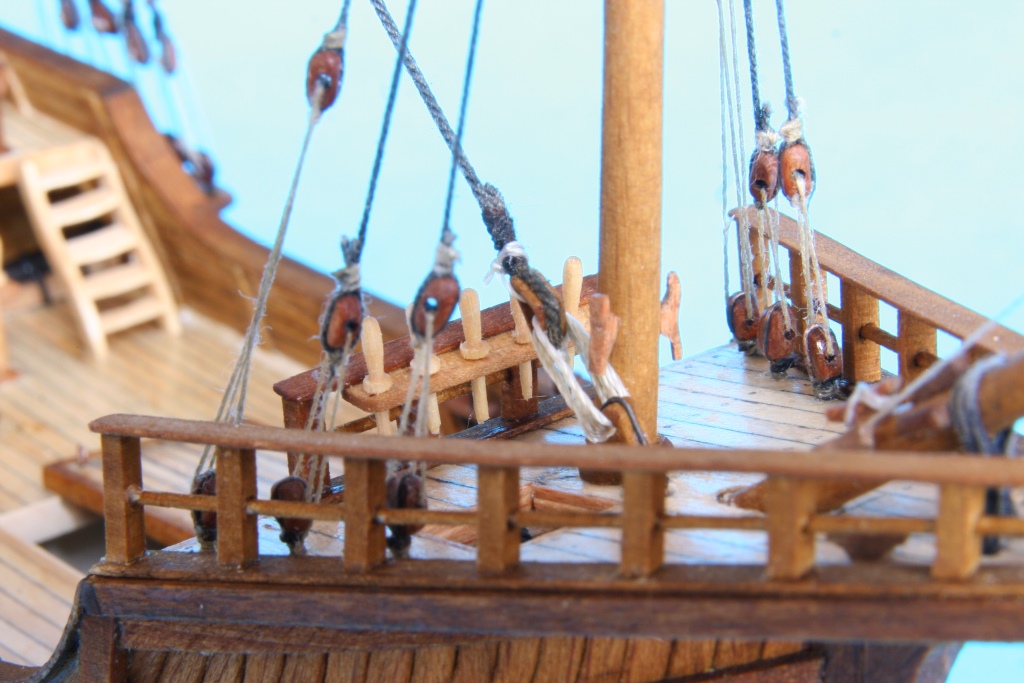 Trochę drobnych detali jak obręcze wokół masztów, otworów pod liny kotwiczne, bloki na topach masztów, knagi na burtach i takie czarne ustrojstwo, które nie mam pojęcia do czego służyło.