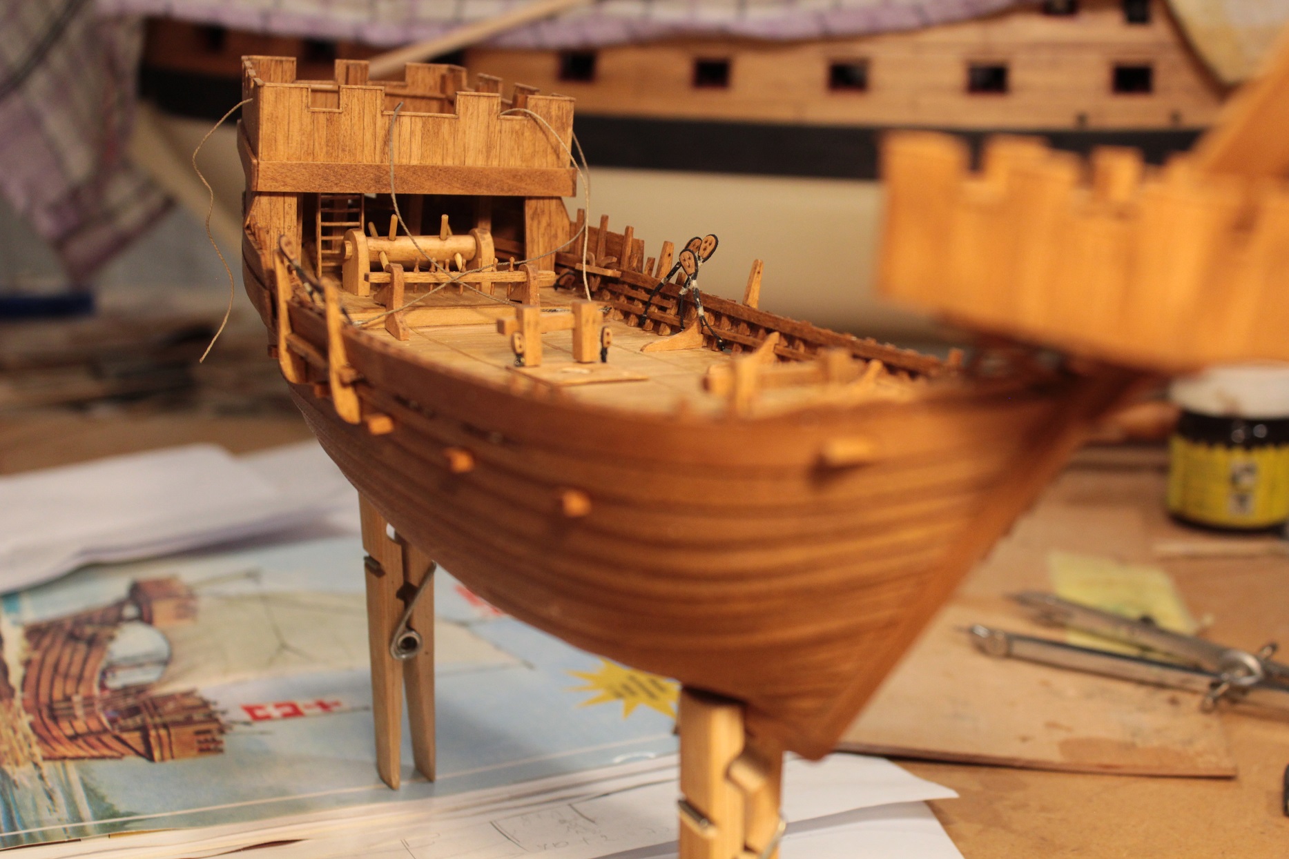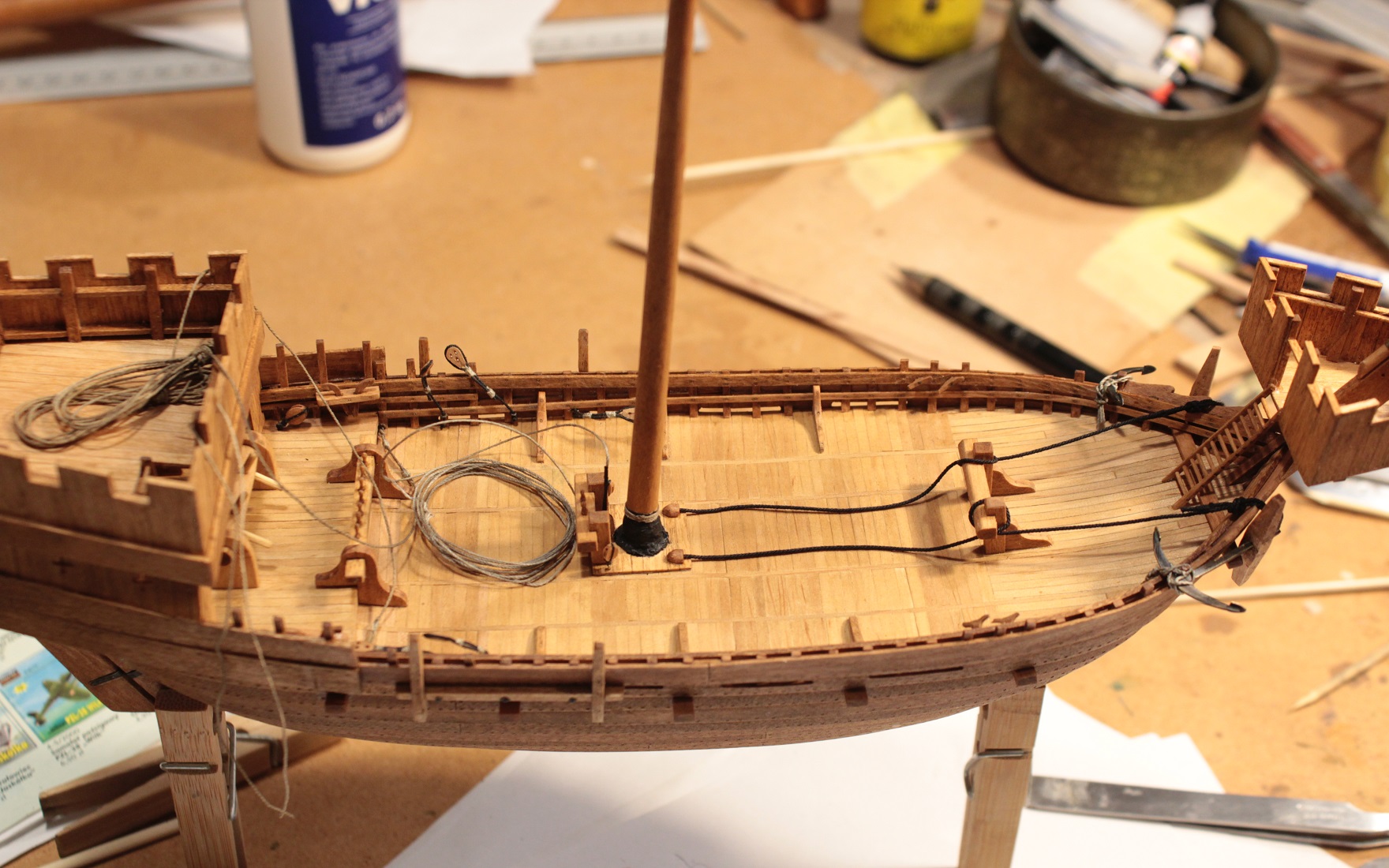 Miałem zasiąść do dłubania przy RW, ale jakoś znów przy kodze jestem. Cepelii ciąg dalszy, prawie widać koniec. Ze standardowego wyposażenia pokładu brakuje kotwic. Zostaje maszt, takielunek, flagi, podstawka i gablotka. Stan kogi na dziś