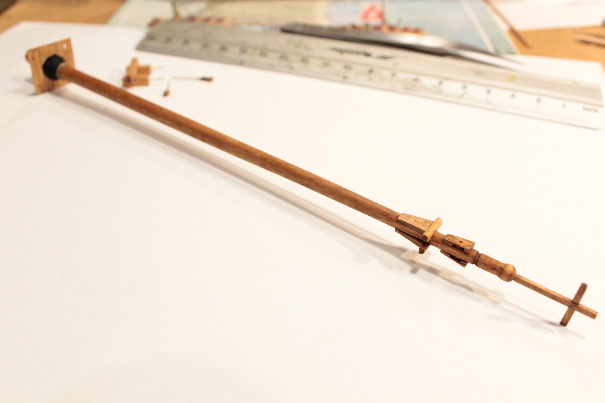Na tą chwile cała osadę masztu można demontować. Brakuje przy niej tylko kip do wlotu lin kotwicznych pod pokład.