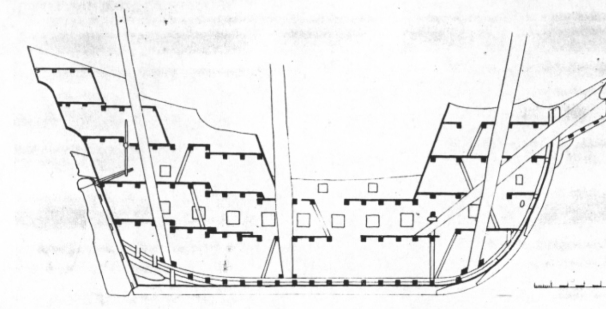 Ja bym temu nie ufał. Zbyt dużo "schodków" na pokładach. Zerknij na przykład na wrak Mary Rose. Była przebudowywana w pierwszej połowie XVI w. Nieco starsza niż Smok, ale nie mieli takich schodków na pokładach. Jak tu lawety z działami przeciągać, same kłopoty. Poprzeglądałbym inne dostępne ryciny z tego okresu