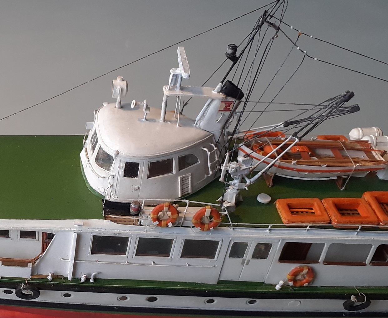 Witam,coś tam przybyło,zamknąłem dachem sterówkę jest komin ze znakiem ,na planach jest poziomo,na zdjęciu inaczej ale tak zostawię,pozdrawiam Marek