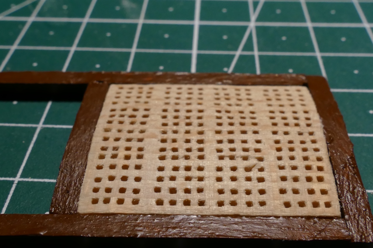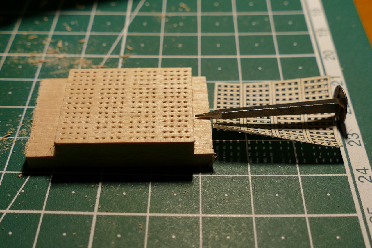 Ksero gretingu przyłożyłem do 3mm listewki i gwoździem pozaznaczałem miejsca otworów.