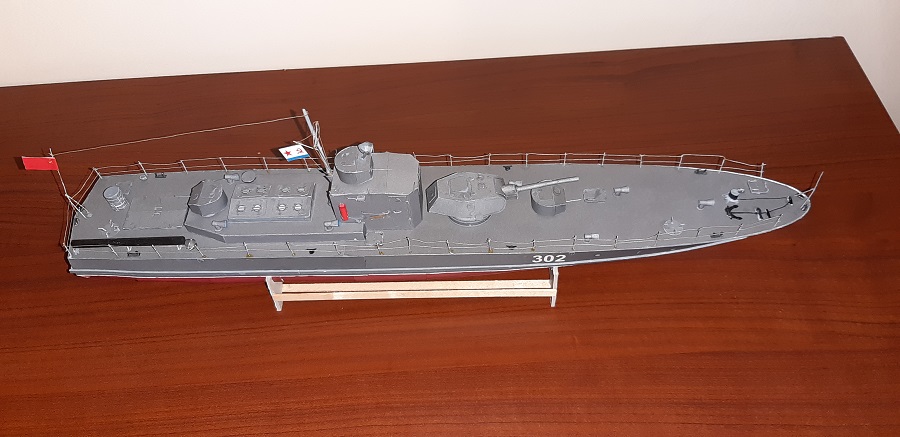 Oto i ukończyłem swój 1 model KARTONOWY NA POWAŻNIE. zadowolony jestem z niego tak średnio. Do połowy mi jakoś szło, a i efekt był dla zadowalający, ale końcówka począwszy od kotwicy to była męczarnia, stąd też taki ogólny efekt. Najbardziej jestem zniesmaczony wyglądem relingów.... No ale cóż, 1 model taki być musi Big Grin