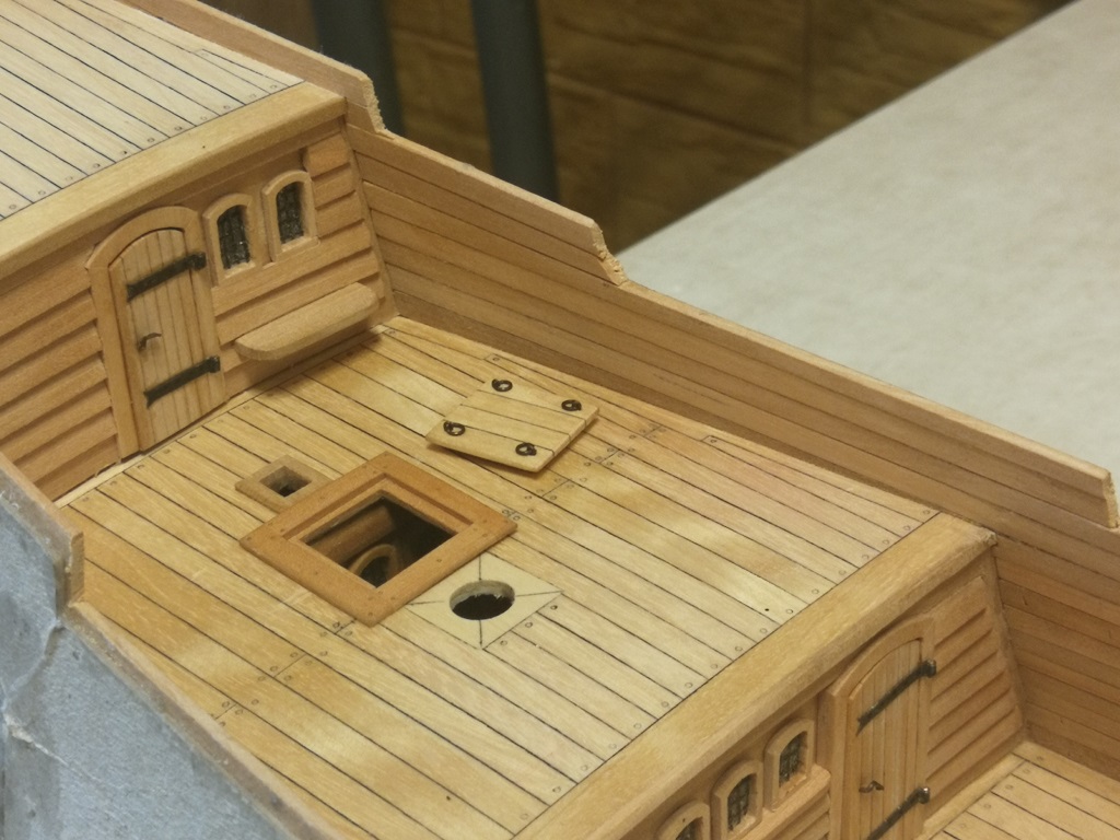 Armaty umieszczone pod pokładami i zamocowane na linach odrzutowych. Burty od wewnątrz wydeskowane. Gretingi na razie przymierzone "na sucho" jeszcze powędrują do pudełka.