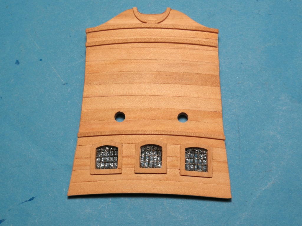 Zabawy ciąg dalszy, poszycie rufy i lustro rufy (jeśli dobrze to nazywam), które będzie wklejone nieco później.