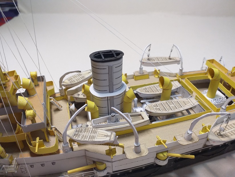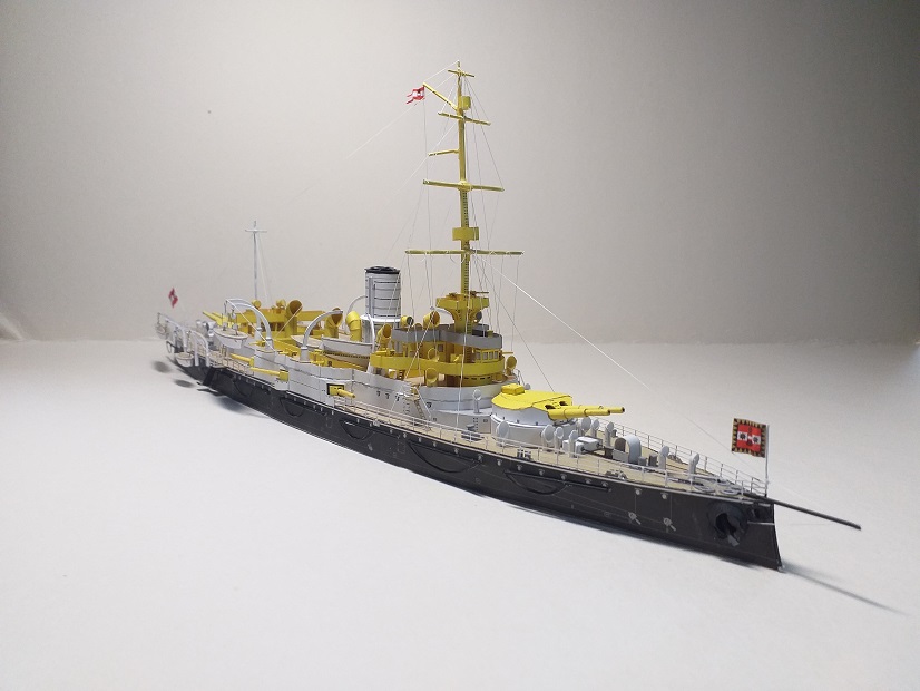 To jest już koniec budowy tego modelu. Od siebie dodałem reling wycinany laserowo, łańcuch też wycinany laserowo (czarny), olinowanie to nić elastyczna 0,12. Zapraszam do galerii.