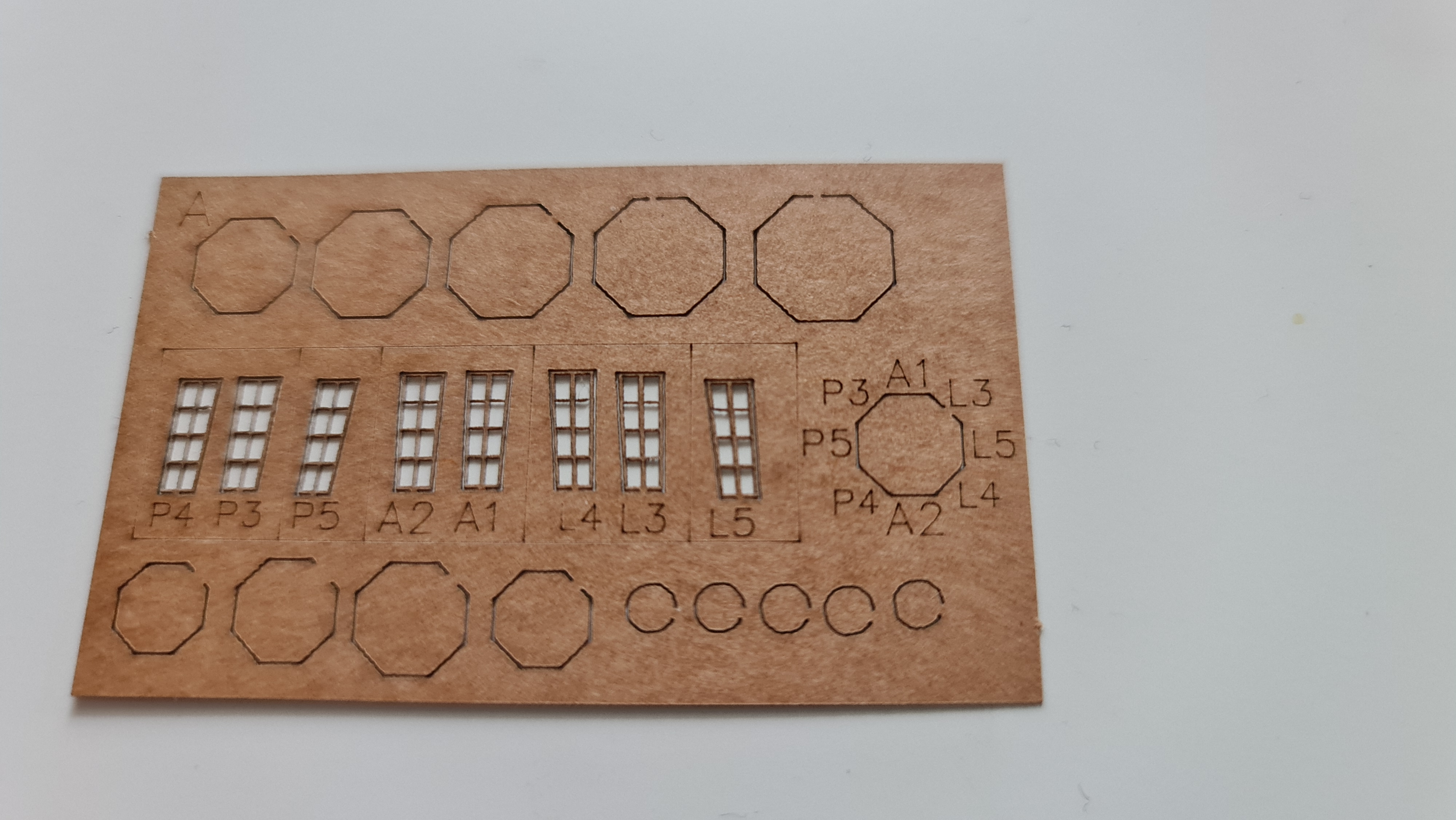 Stwierdziłem, że narysuję je od nowa, wg planów Hebdy i dzięki uprzejmości Seahorse'a (Wydawnictwo seahorse.pl) udało się je wypalić laserem w preszpanie 0,2mm. Co wg mnie i rezultatu jaki udało się osiągnąć było pomysłem rewelacyjnym. Dostępne tam bloczki i detale preszpanowe są mega rewelacyjne, polecam wszystkim kartoniarzom.