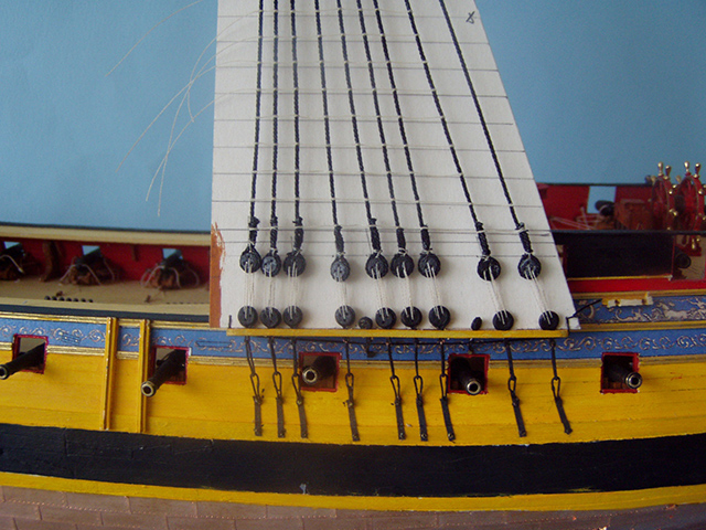 Zastanawiałem się jakie wybrać bloczki i jufersy - papierowe czy drewniane . Ponieważ model jest papierowy wybrałem papierowe . W internecie nie znalazłem całego zestawu bloczków i jufersów w skali 1: 72 był tylko do 1:96 . Zadzwoniłem do Pana Bartka Kłyczyńskiego z SHIPYATD-u z pytaniem czy taki zestaw można kupić . Kiedy Pan Bartek dowiedział się dlaczego kleje model - zaoferował mi przekazanie NIEODPŁATNIE (znał Kacpra i zaczęty model) zestawu .Bardzo dziękuje za okazane zrozumienie i piękny gest.