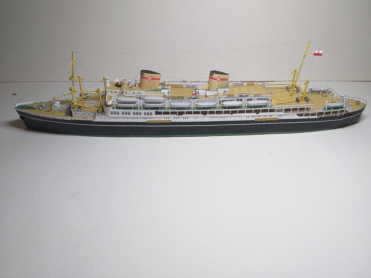 Witam, chciałbym pokazać model który był zaczęty kiedyś a niedawno skończony. Jest to model polskiego statku pasażerskiego M/S Batory z wydawnictwa JSC 14, skala 1:400, autorem opracowania jest Jan Schmidt, znany też pewnie z licznych planów modelarskich. Do modelu dodałem reling wycinany laserowo też z JSC, moje dzieło to bloczki przy bomach, olinowanie nie wszędzie mi wyszło ale już tak zostawiam, łańcuch kotwiczny będzie jak dokupię gotowy, zapraszam do galerii.