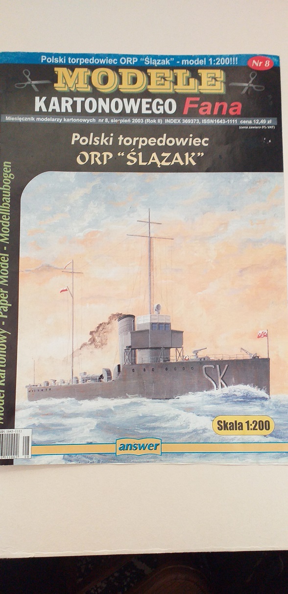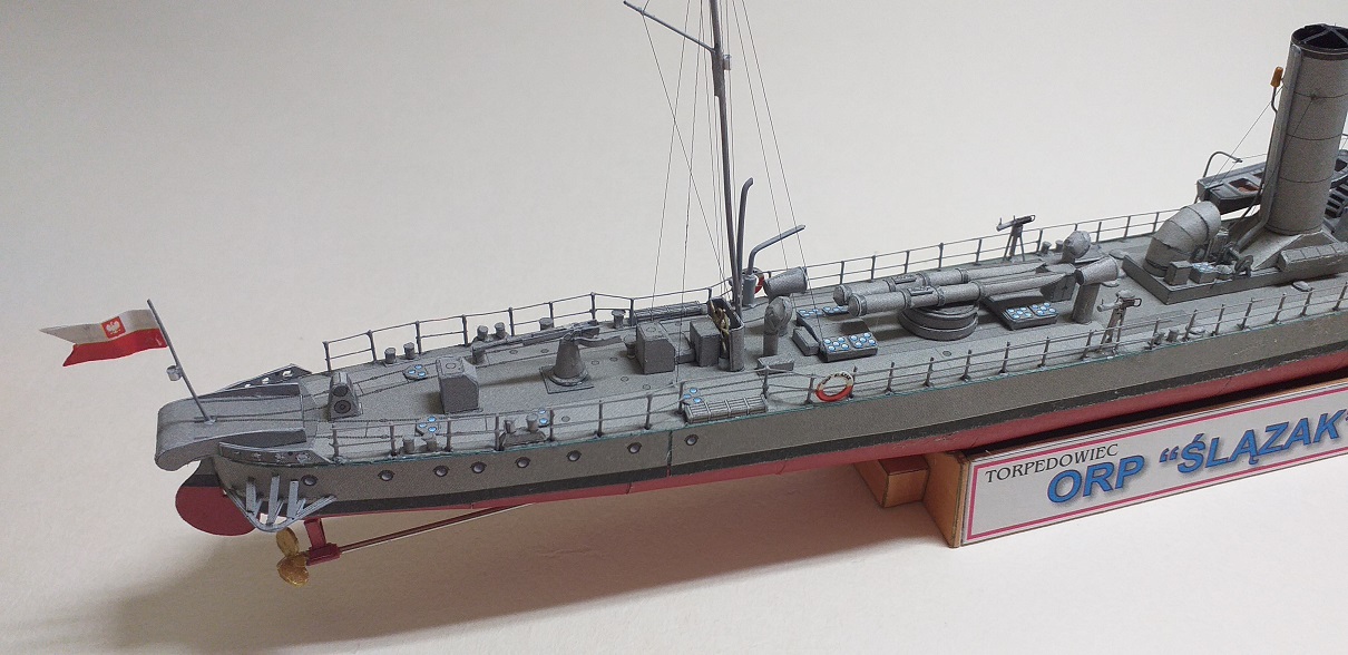 Kolejnym modelem budowanym bez żadnej relacji jest jak w tytule, torpedowiec ORP Ślązak, autorem opracowania jest Grzegorz Nowak. Model fajny, mały i przyjemny w sklejaniu. Zapraszam do skromnej galerii.