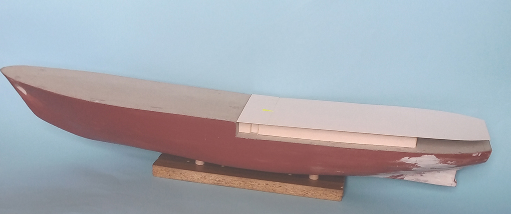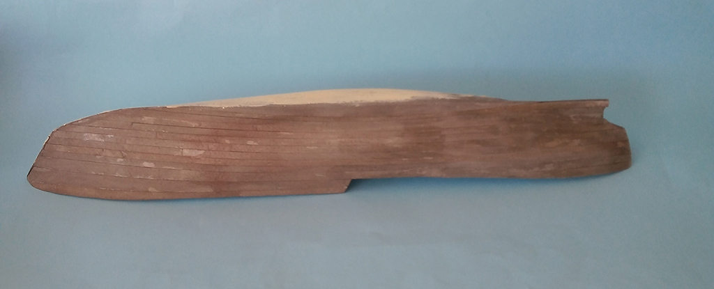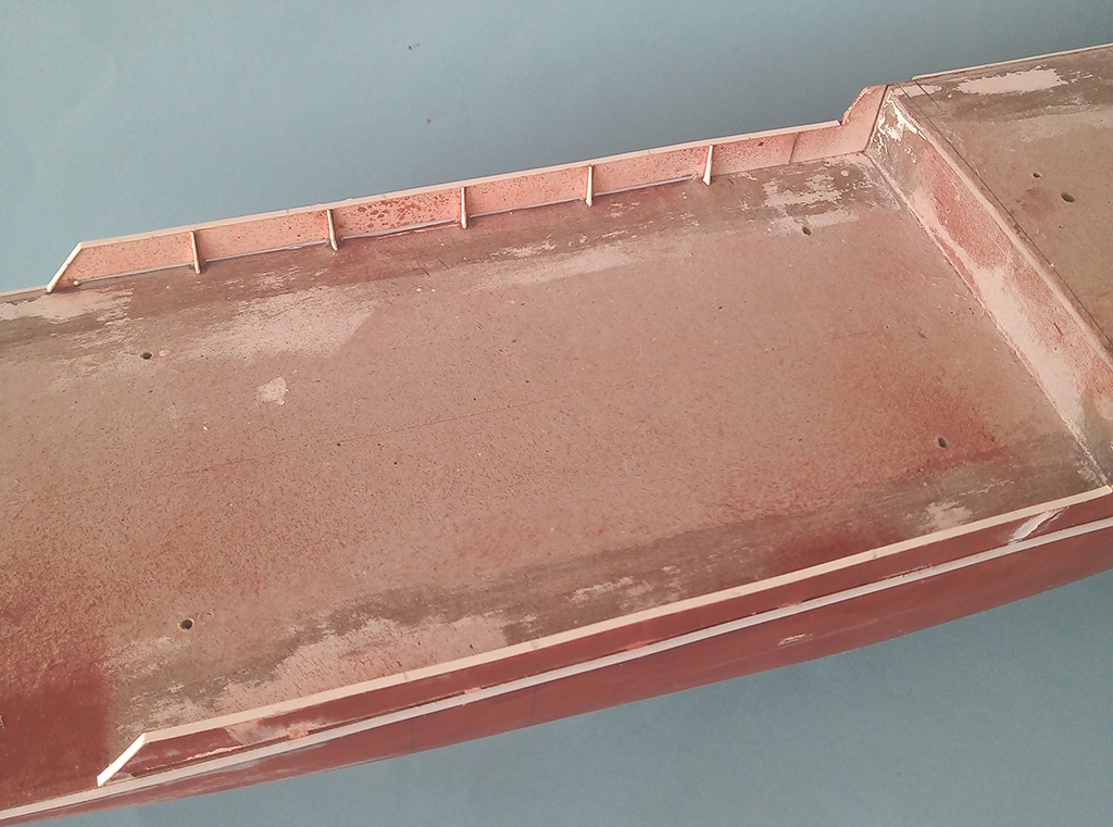 Udało się poszyć cały kadłub . Pomalowałem wstępnie caponem i po przeszlifowaniu zaszpachlowałem. Jak wyschła szpachlówka szlifowanie a następnie pryśnięcie podkładem . Kadłub schnie to zabrałem się za lepienie nadbudówki.
