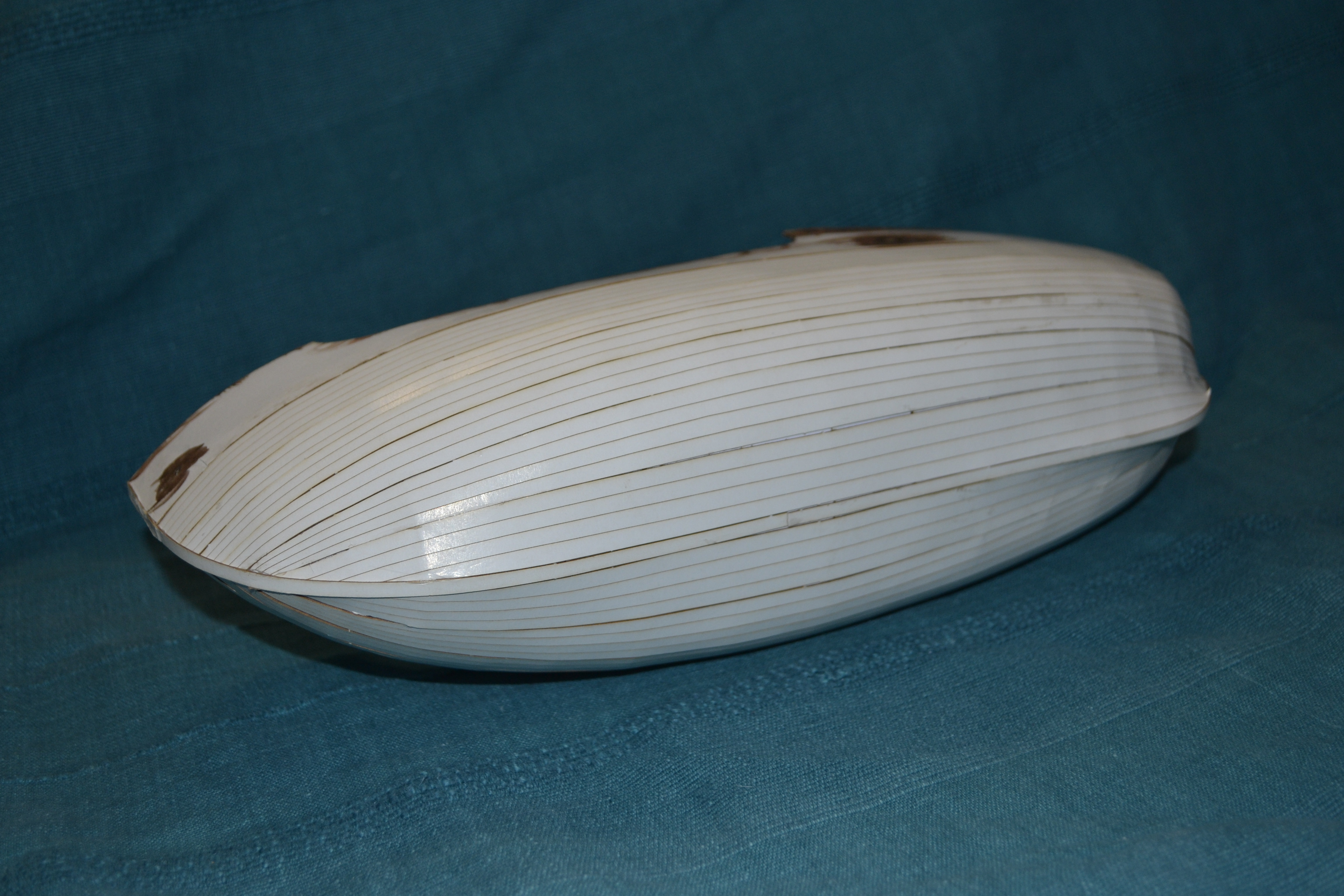 Mam już zrobiony szkielet i położone 2 poszycia (z trzech). Sam szkielet z racji tego, że jest cięty laserowo składa się bardzo prosto: Ponieważ karton jest bardzo gruby, szkielet też wydaje się przypominać statek a nie śmigło (podobnie jak przy Kodze bremeńskiej, gdzie szkielet tak samo się ładnie składał): Zatem nie będę się nad nim rozwodził.