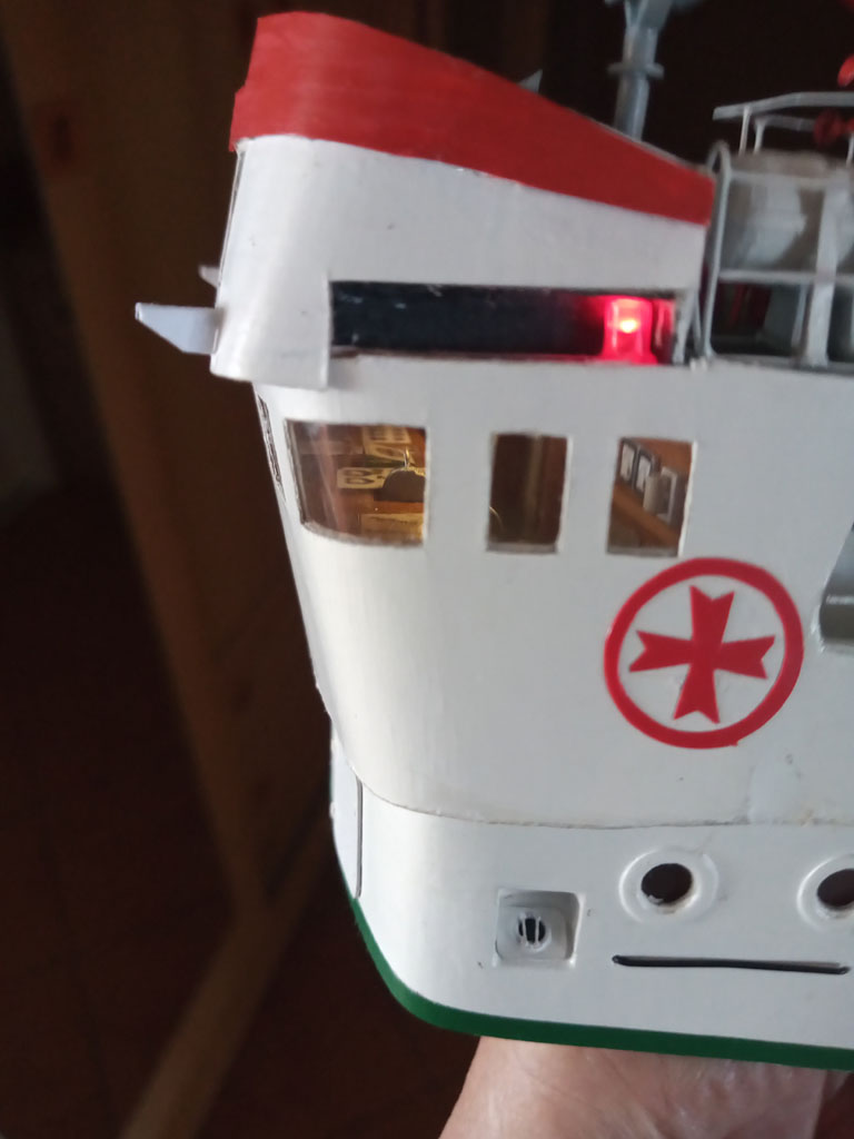 Przybyły światełka na " choince " . W sterówce było trochę ciemno - trzeba było zapalić światło oraz światło pozycyjne . Na " choince brak świateł bo nie miałem światłowodu.