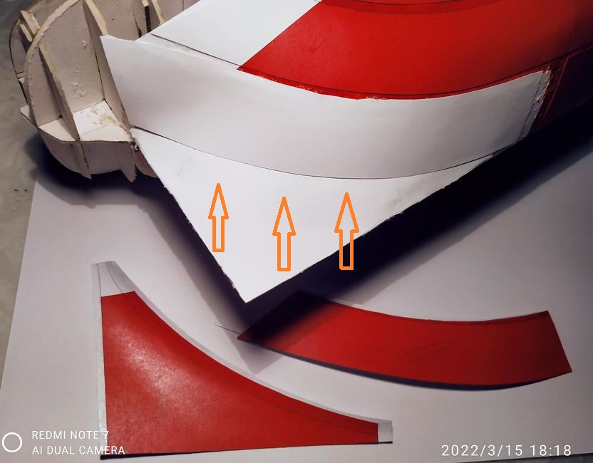 W rufowej części nie udało mi się dopasować oklejek. Nie ma zapasu koloru, a nie chciałem ingerować w kształt oklejek.