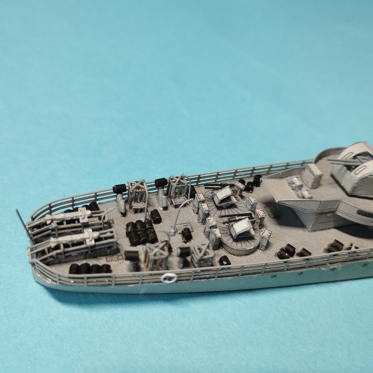 Ostatnio udało mi się zbudować taki niewielki modelik czyli jak w tytule HMS Starling. Model opracowany przez wydawnictwo JSC wersja na wodnicach co nie tworzy tak zwanych krowich żeber, druk dwustronny co poprawia jakość. Od siebie dodałem reling wycinany laserowo też JSC oraz przerobiłem zrzutnie bomb głębinowych oraz ich klatki; zapraszam do skromnej galerii.