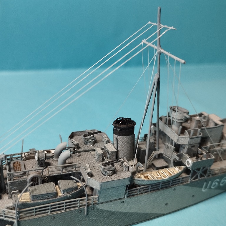 Ostatnio udało mi się zbudować taki niewielki modelik czyli jak w tytule HMS Starling. Model opracowany przez wydawnictwo JSC wersja na wodnicach co nie tworzy tak zwanych krowich żeber, druk dwustronny co poprawia jakość. Od siebie dodałem reling wycinany laserowo też JSC oraz przerobiłem zrzutnie bomb głębinowych oraz ich klatki; zapraszam do skromnej galerii.