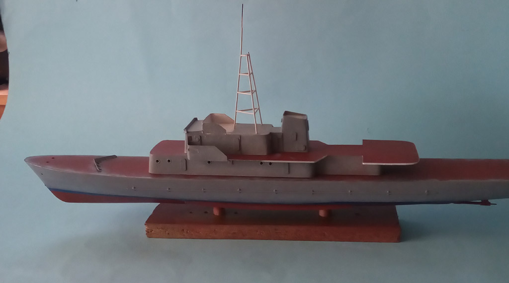Dawno temu ulepiłem kadłub do ORP Mewa . Model ma być podobny do wyglądu po modernizacji w 1999 r. W Modelarzu 2/2015 ukazały się plany - wygląd z 1966. oraz GPM wydał wycinankę z tego samego okresu .Po analizie planów doszedłem do wniosku że zrobię kadłub na ich podstawie a resztę będe kombinował na podstawie fotek z internetu .Może uda się ulepić coś podobnego ORP Mewa . Na początek kilka fotek jak zaczynałem lepienie