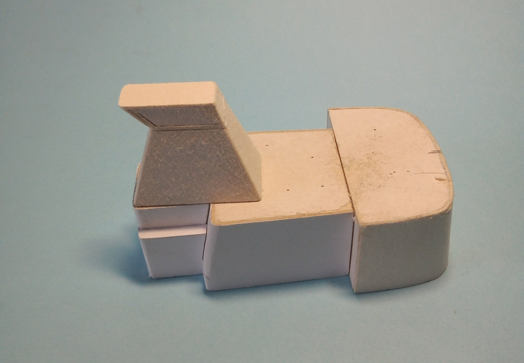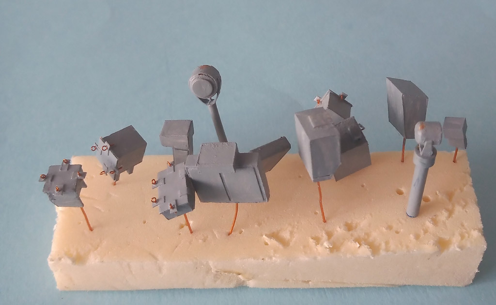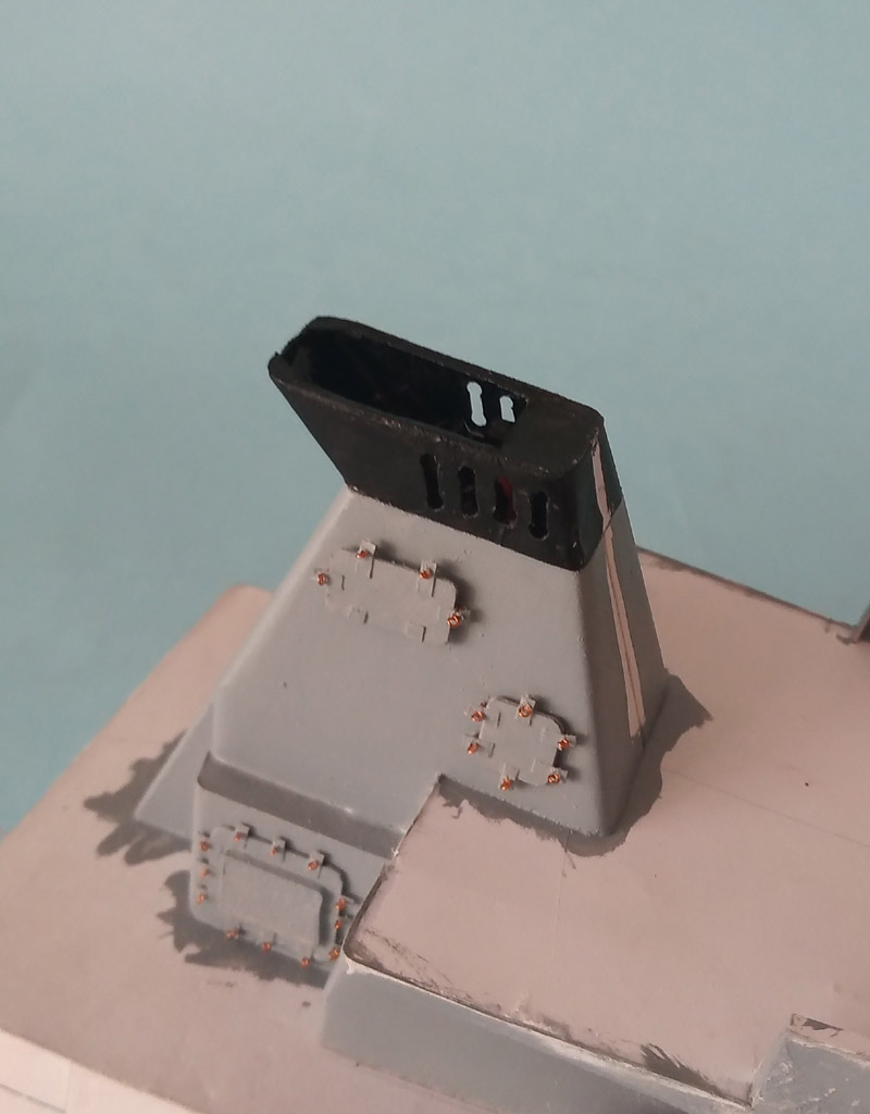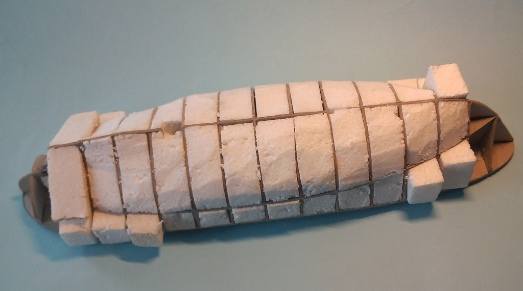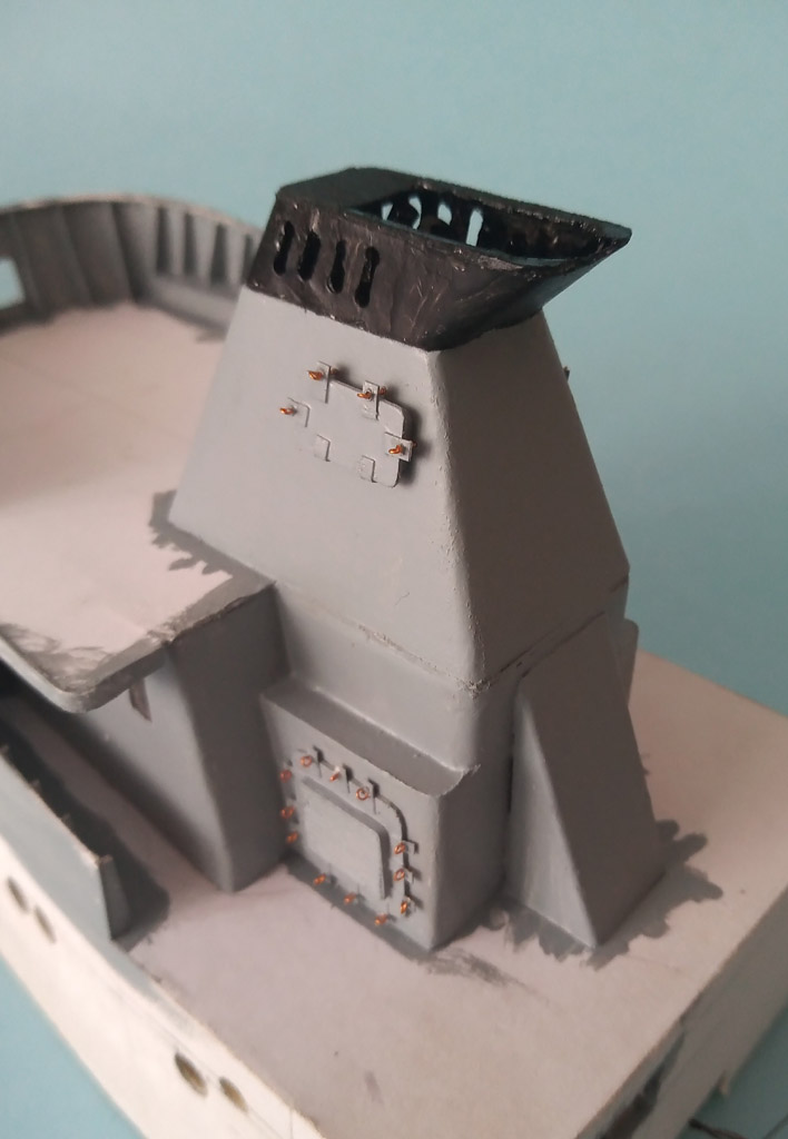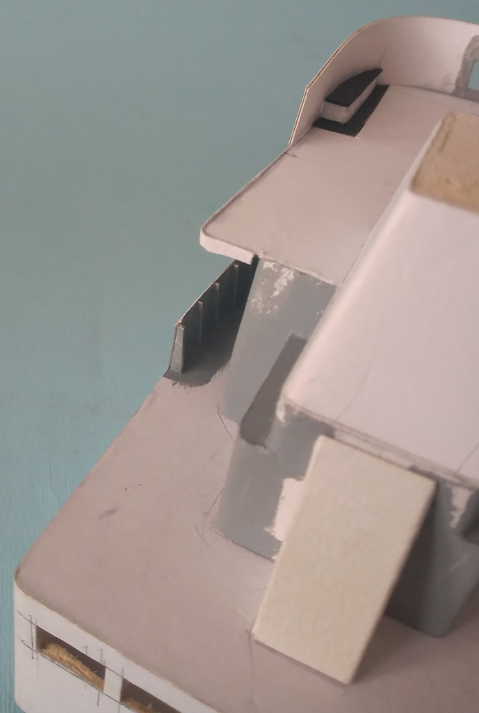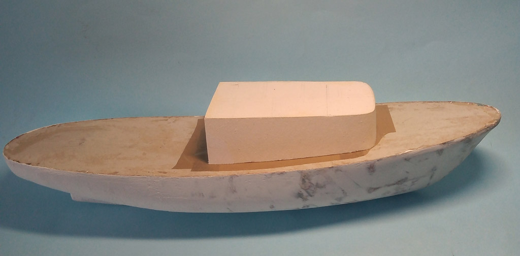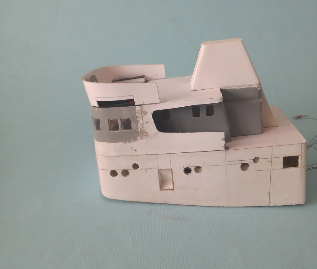 Ulepiłem szablony do wykonania nadbudówek - przymiarka na kadłubie
