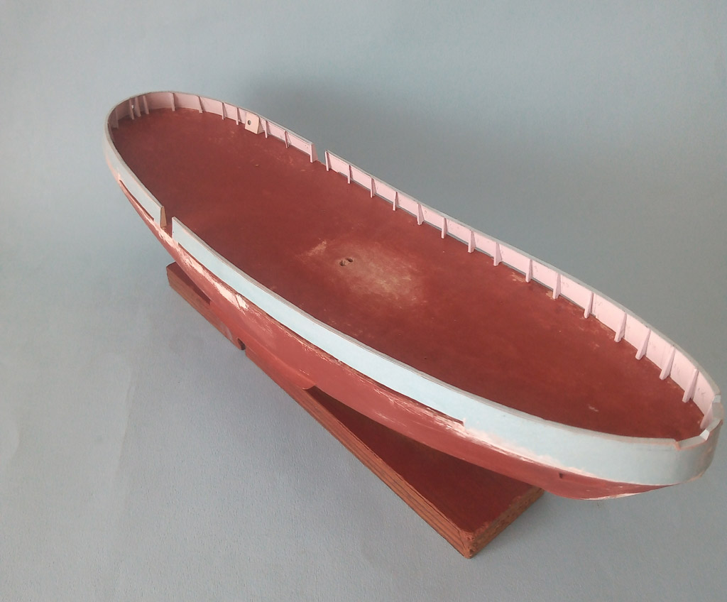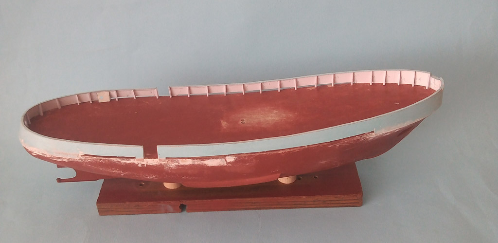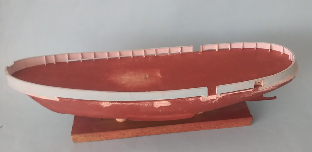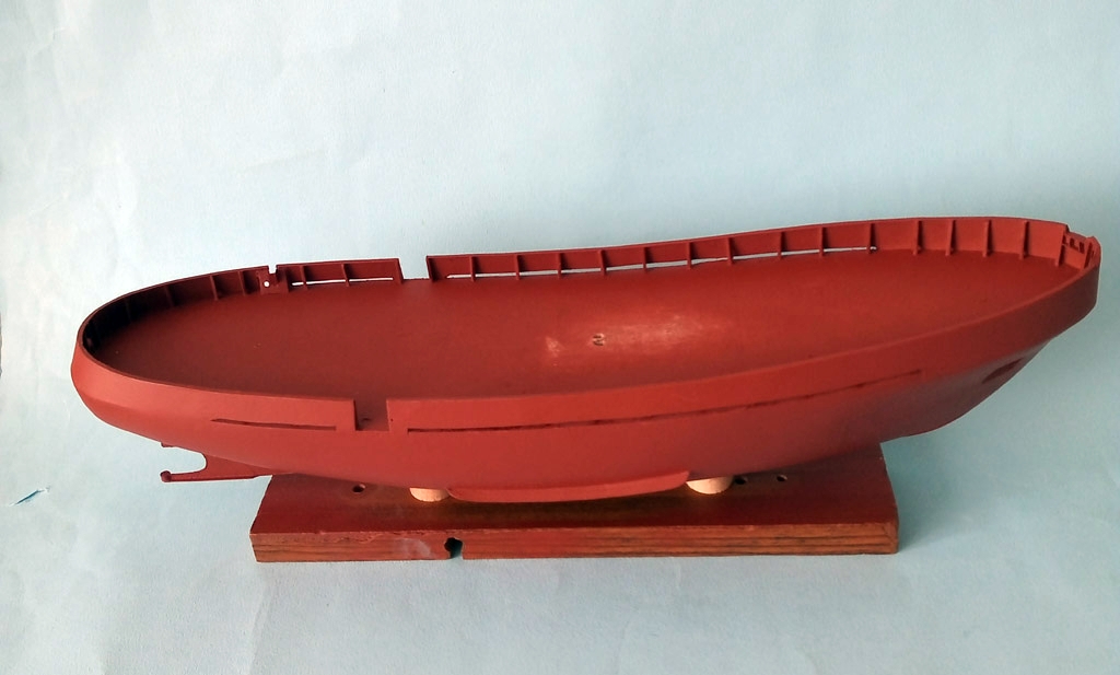 Pomimo braku czasu jednak coś lepie . Kadłub pryśnięty podkładem , troche drobnicy i dorobiłem kape komina (chyba się tak nazywa )