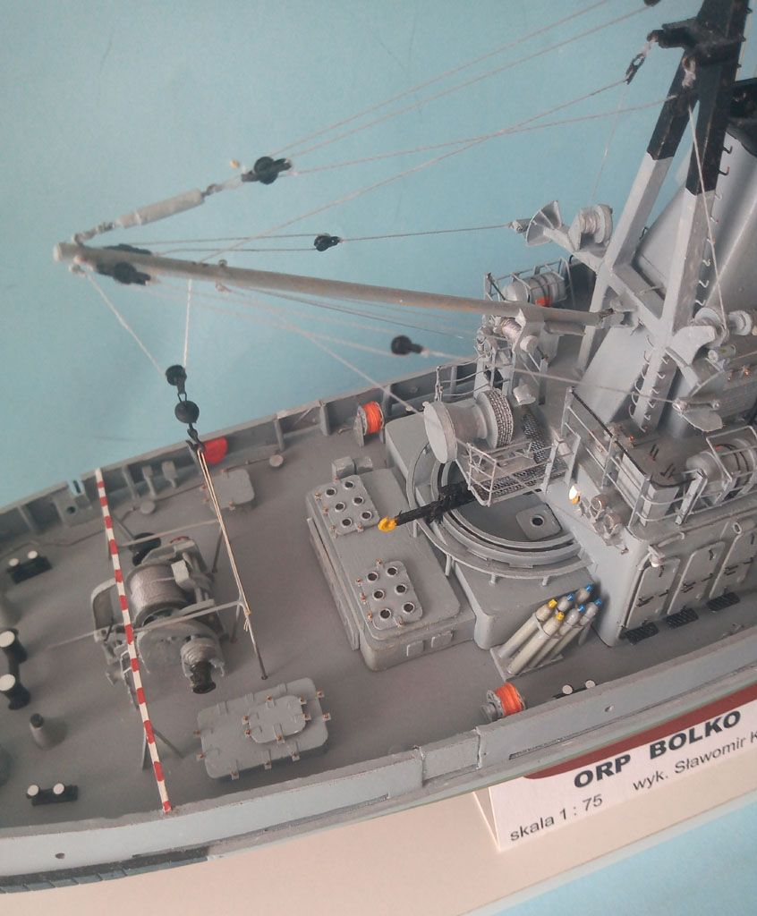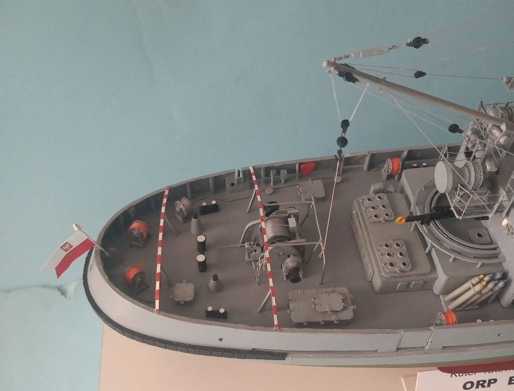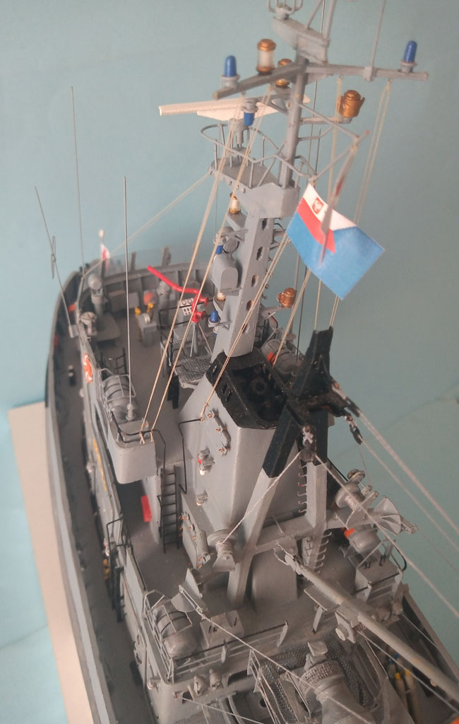 Nadbudówka zamocowana . Przybyło trochę drobnicy - anteny , działko wodne itp . Jeszcze trochę drobnicy i będzie finał