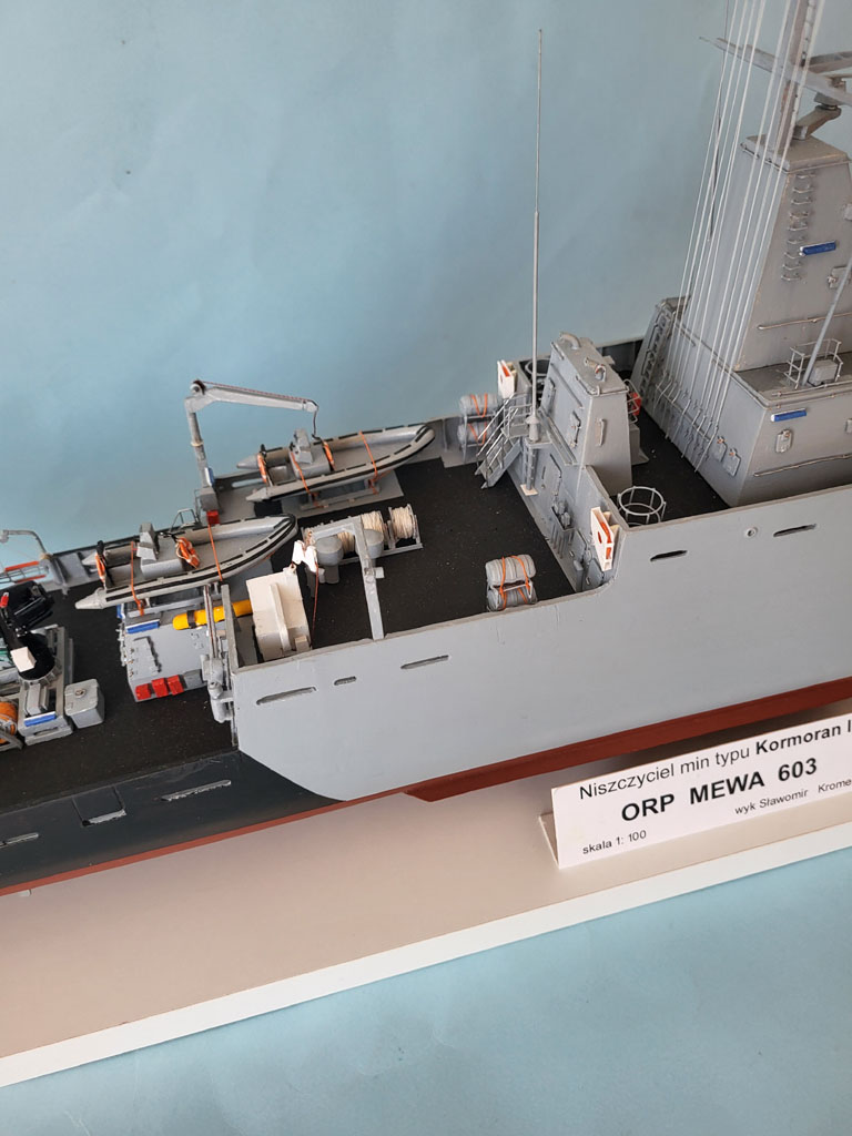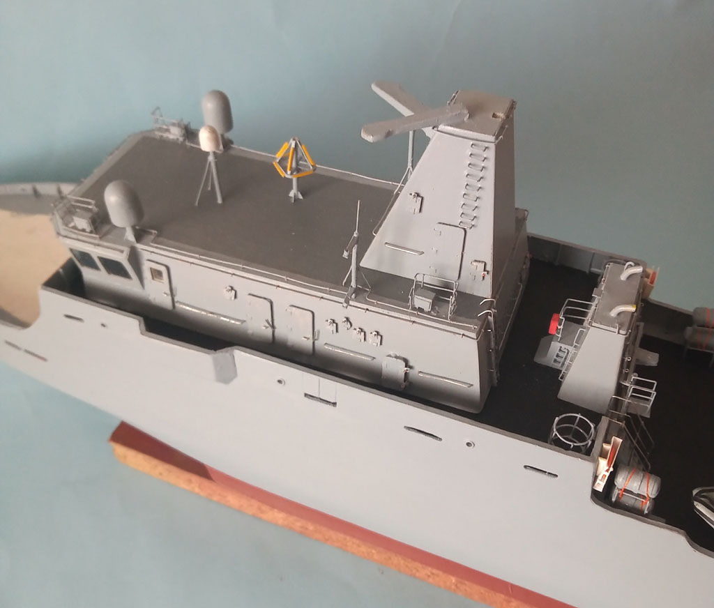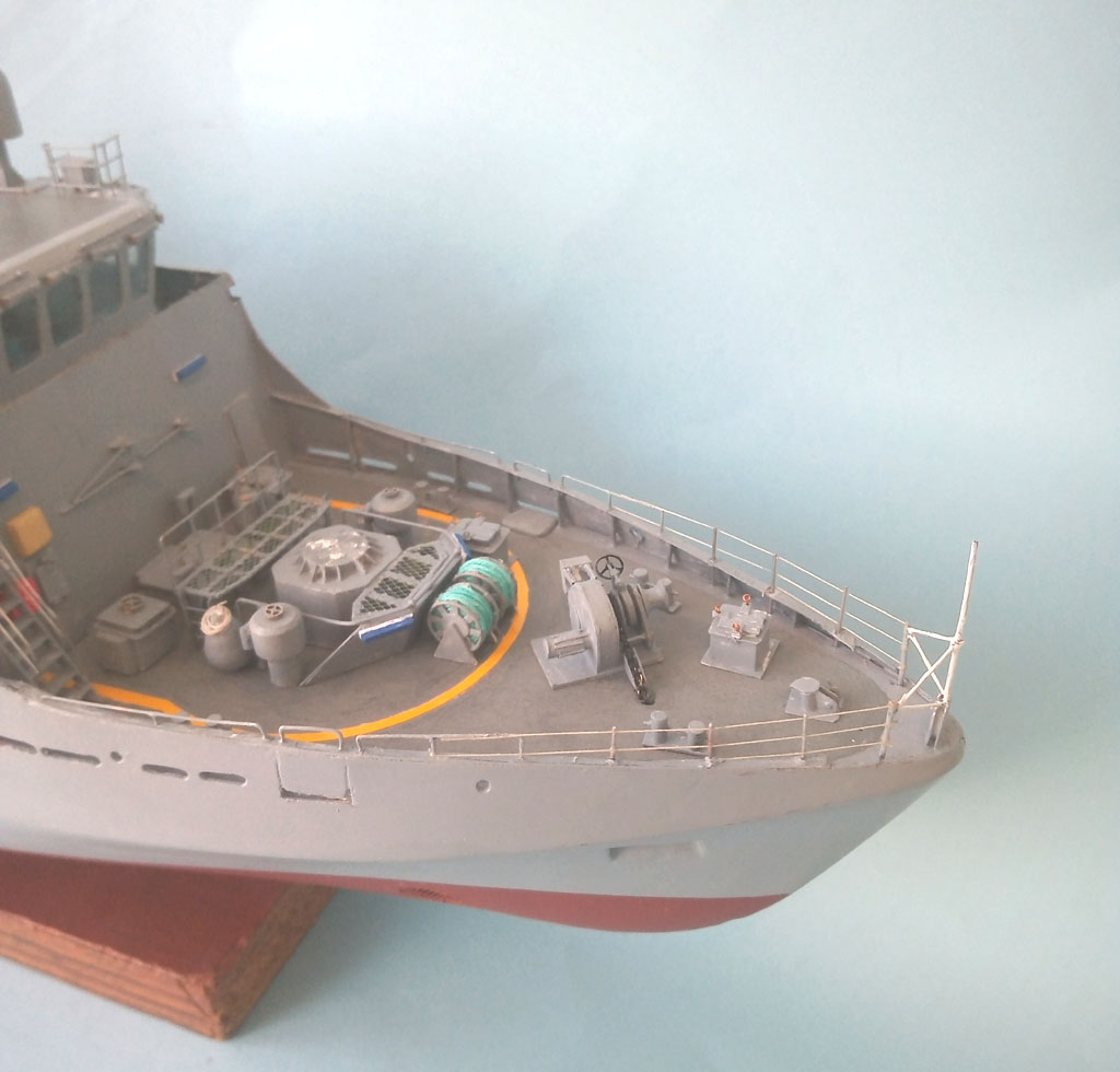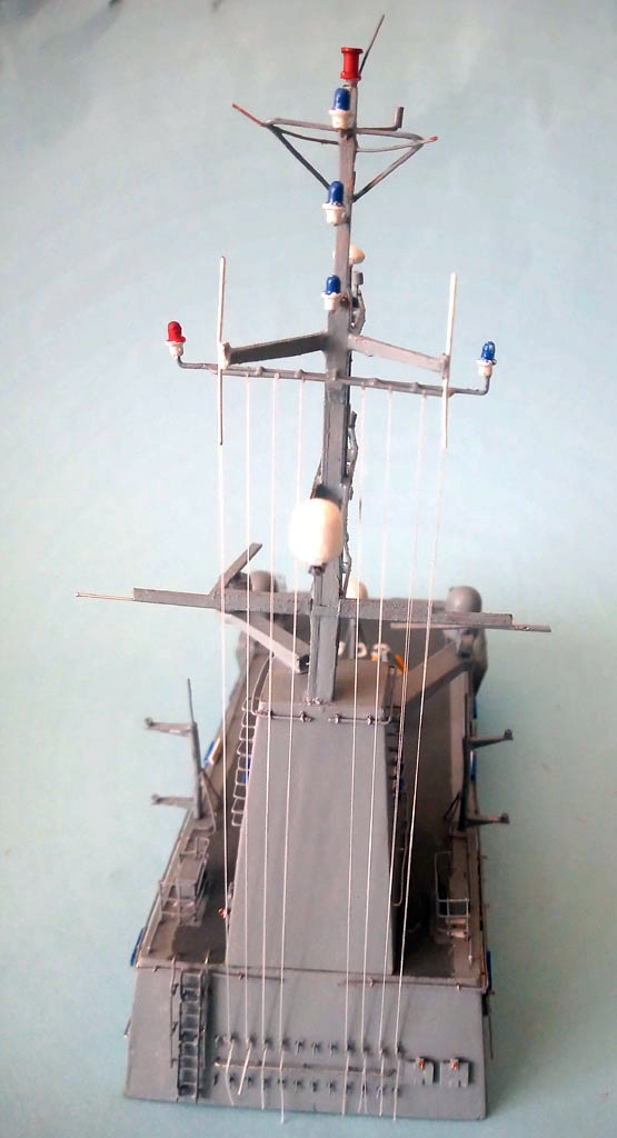 Upał to i kleić się nie chce . Trochę jednak zrobiłem - reling na dziobie jakieś światełka oraz zaczęty maszt . Zrobione oznaczenie jednostki teraz wiadomo że to będzie MEWA