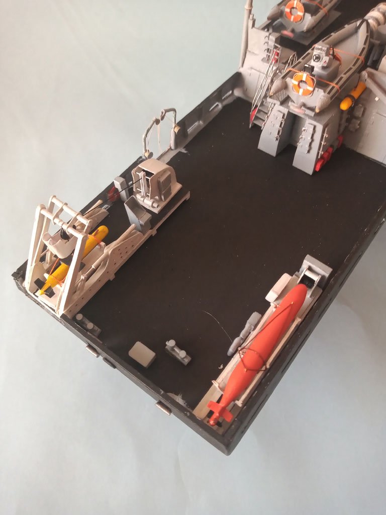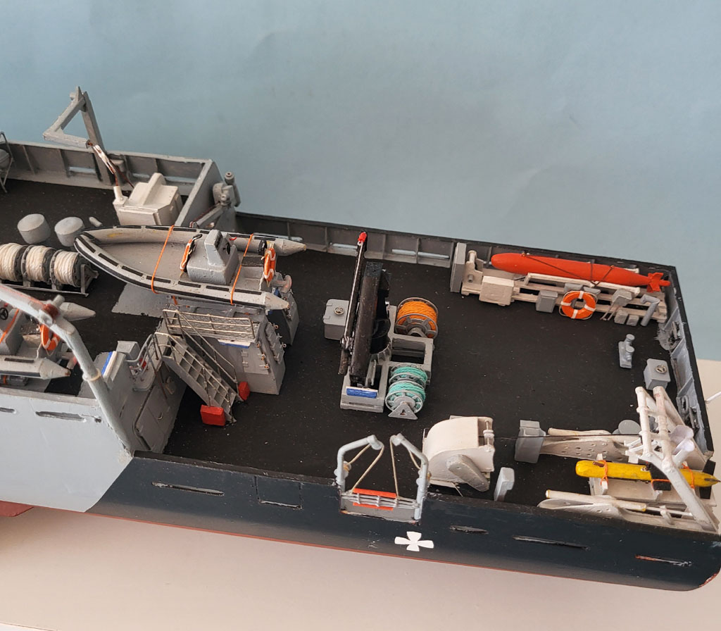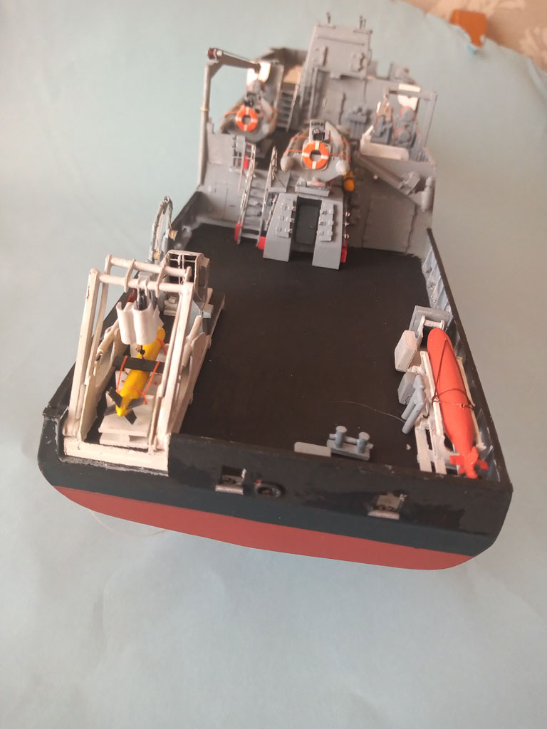 Trochę weny brakuje ale coś zawsze ulepie . Pojazd podwodny Hugin oraz podstawę do niego jakoś udało się zrobić .Zamocowałem Krakena i Hugina na pokładzie oraz zrobiłem podstawę pod żuraw HLRM 35/5s