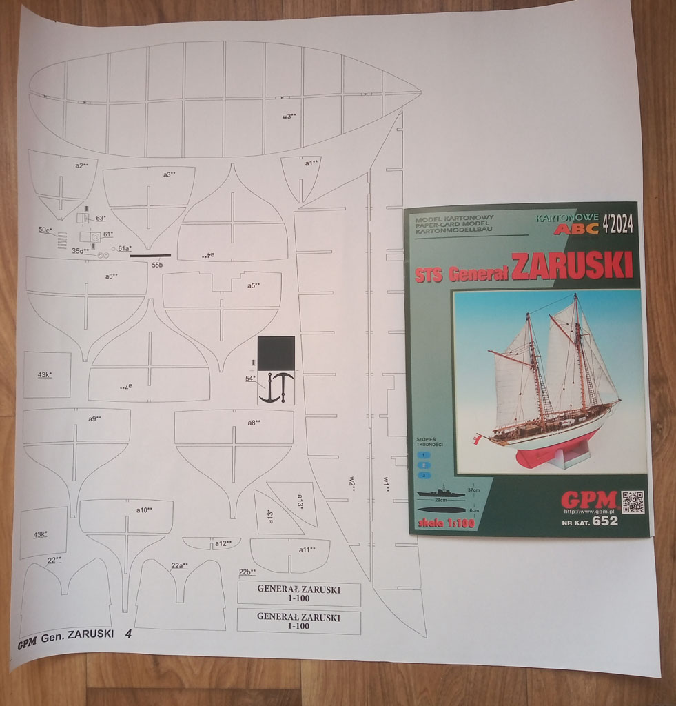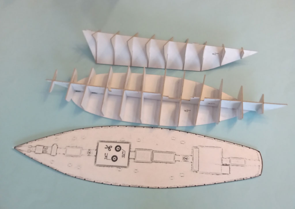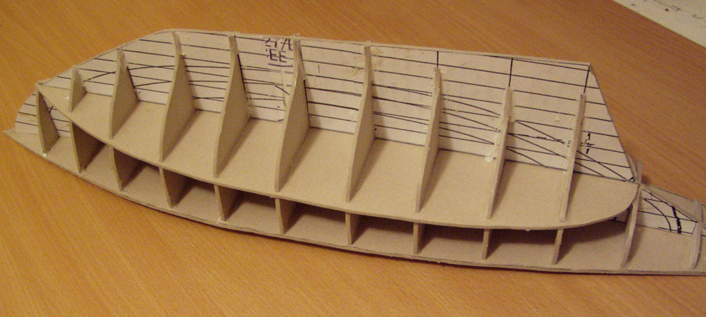 Oczekując na plany ORP ALBATROS (wiele elementów takich samych na ORP MEWA ) które mają się ukazać w MODELARSTWO OKRĘTOWE postanowiłem ulepić jakiś żaglowiec . Kiedyś zrobiłem kadłub jednak po ukazaniu się wycinanki robie kadłub od nowa . Przeskalowałem wycinanke z A4 na A2