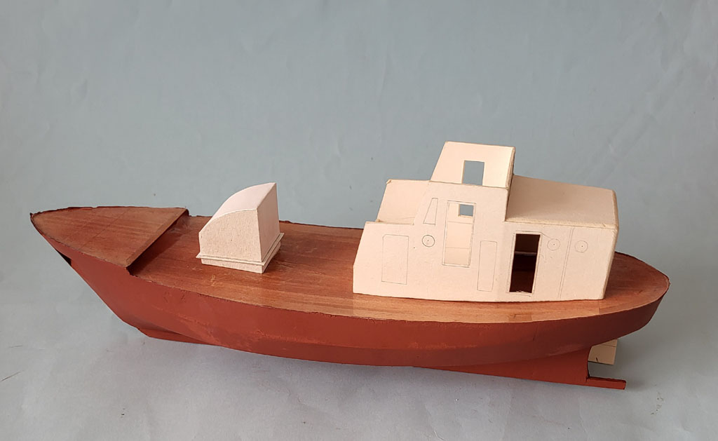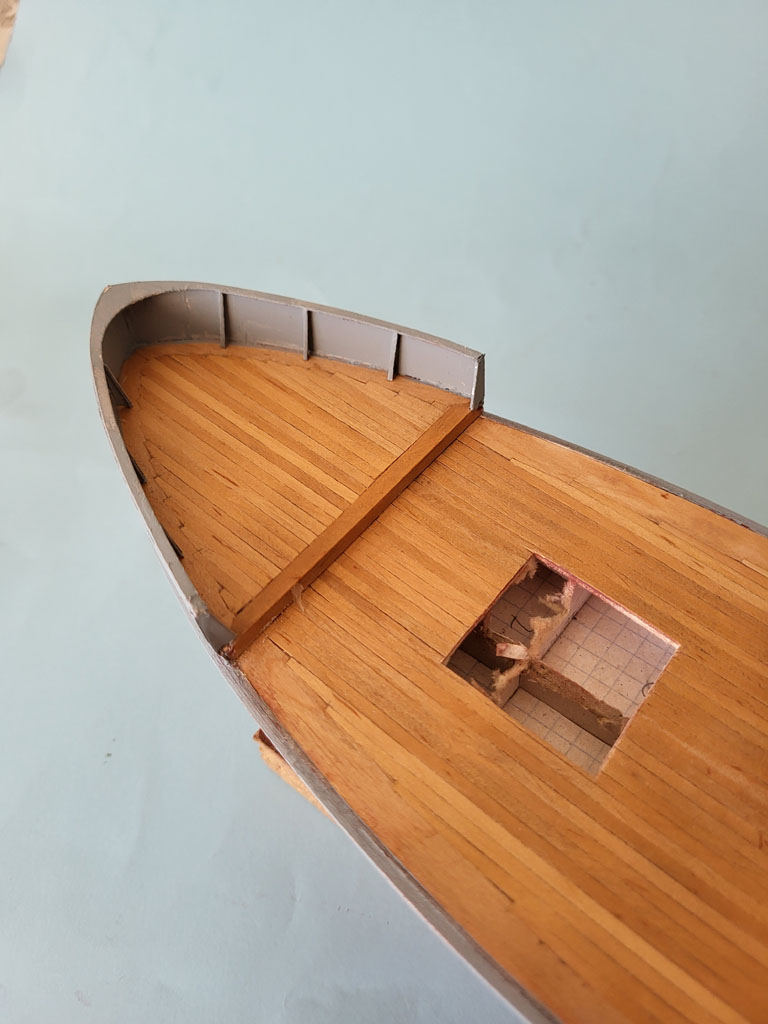 Dalsza zabawa z modelem . Trochę w sterówce zrobiłem zegary i koło sterowe aby nie było tak pusto . Dorobiłem nadburcie i szykuje do malowania . Nadbudówka tylko ustawiona do fotki