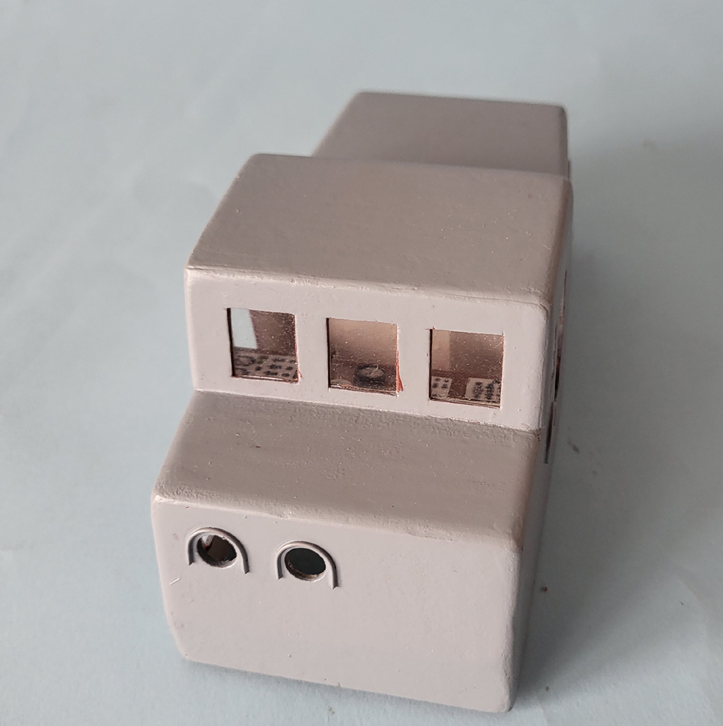 Kadłub pryśnięty podkładem i schnie . Zaczęta nadbudówka - powycinałem trochę otworów i zastanawiam się co jest . W opisie jest podane jakie są pomieszczenia ale w którym miejscu nie do końca . Będę kombinował - a może ktoś posiada wiedzę na ten temat i się podzieli jak powinno wyglądać